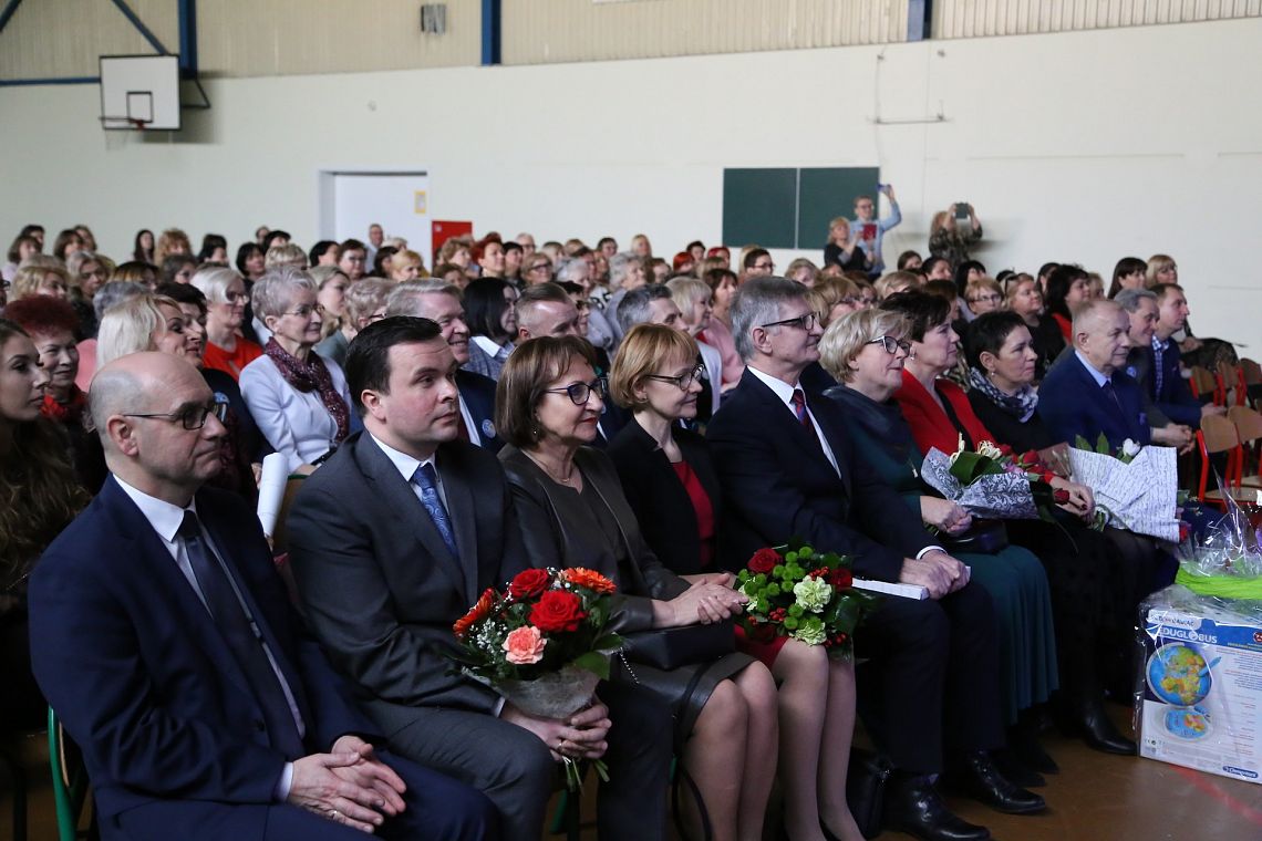 W ramach obchodów 50-lecia Szkoły Podstawowej nr 8, w miniony piątek 21 lutego 2020 r., odbyła się uroczysta akademia z udziałem zaproszonych gości, pracowników, przedstawicieli rodziców oraz licznego grona przyjaciół Szkoły. Dyrektor tej zasłużonej dla lęborskiej oświaty placówki, pan Daniel Nadworski odebrał wiele gratulacji i życzeń, w tym od zastępcy burmistrza Lęborka pani Teresy Ossowskiej-Szarej i wiceprzewodniczącego Rady Miejskiej w Lęborku, pana Zbigniewa Cybuli.