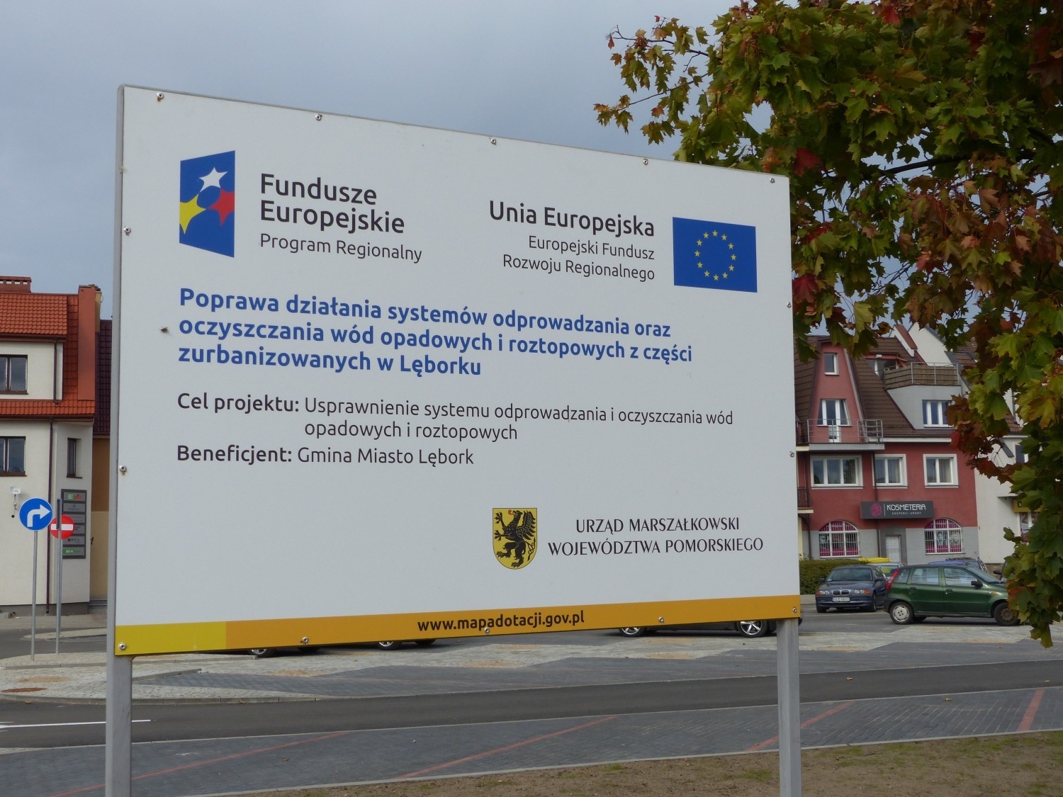 Przebudowa kanalizacji deszczowej w rejonie Targowej. Al. Niepodległości i Staromiejskiej to część większego zadania realizowanego w ramach wartego prawie 4,9 mln zł projektu „Poprawa działania systemów odprowadzania oraz oczyszczania wód opadowych i roztopowych z części zurbanizowanych Lęborka”. Na jego realizacje miasto Lębork pozyskało ponad 3,3 mln zł dotacji (70%) w ramach Regionalnego Programu Operacyjnego Województwa Pomorskiego.