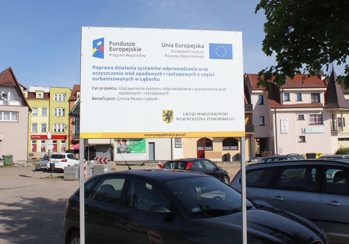 Przebudowa kanalizacji deszczowej w rejonie Targowej. Al. Niepodległości i Staromiejskiej to część większego zadania realizowanego w ramach wartego prawie 4,9 mln zł projektu „Poprawa działania systemów odprowadzania oraz oczyszczania wód opadowych i roztopowych z części zurbanizowanych Lęborka”. Na jego realizacje miasto Lębork pozyskało ponad 3,3 mln zł dotacji (70%) w ramach Regionalnego Programu Operacyjnego Województwa Pomorskiego.