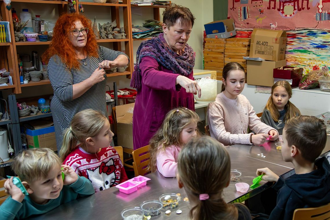 Twórczo i z wyobraźnią ferie spędzają także uczestnicy zajęć w Muzeum w Lęborku. W pierwszym tygodniu ferii muzealne sale zamieniły się w pracownie dawnych rzemiosł – dzieci malowały na szkle, tworzyły biżuterię z naturalnych materiałów, ekologiczne torby, poznawały mydlarstwo, quilling i inne techniki artystyczne. Każde spotkanie poprzedzała sentymentalna podróż do świata starych bajek z rzutnika JACEK, co tworzyło wyjątkowy klimat łączący naukę, zabawę i twórczy odpoczynek.