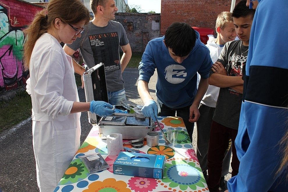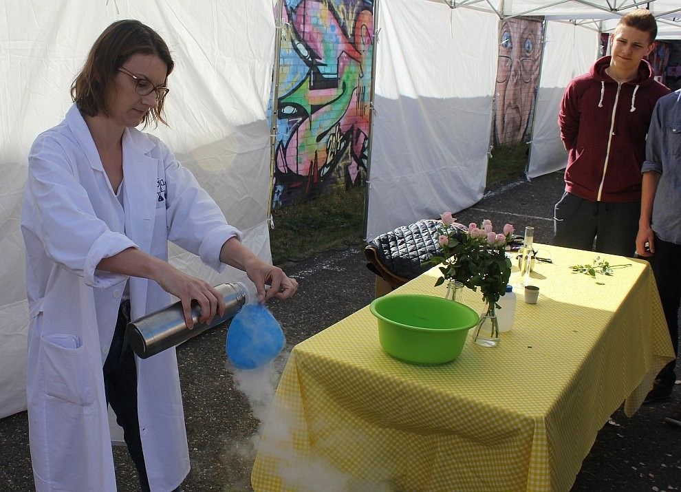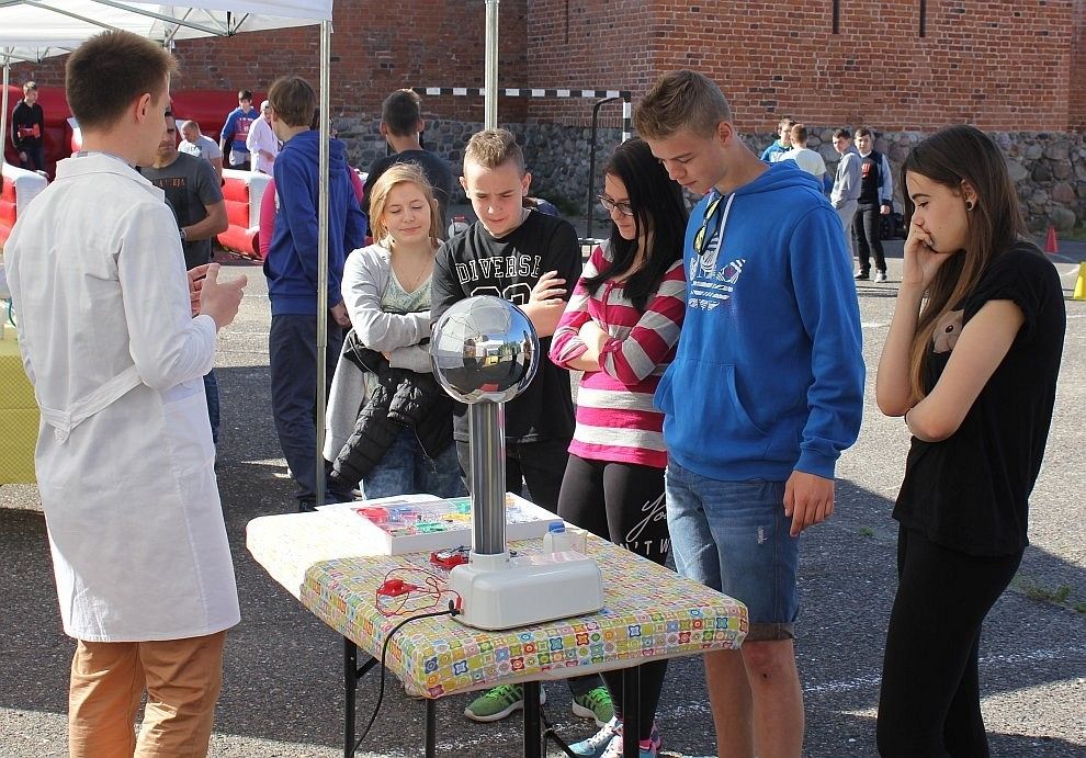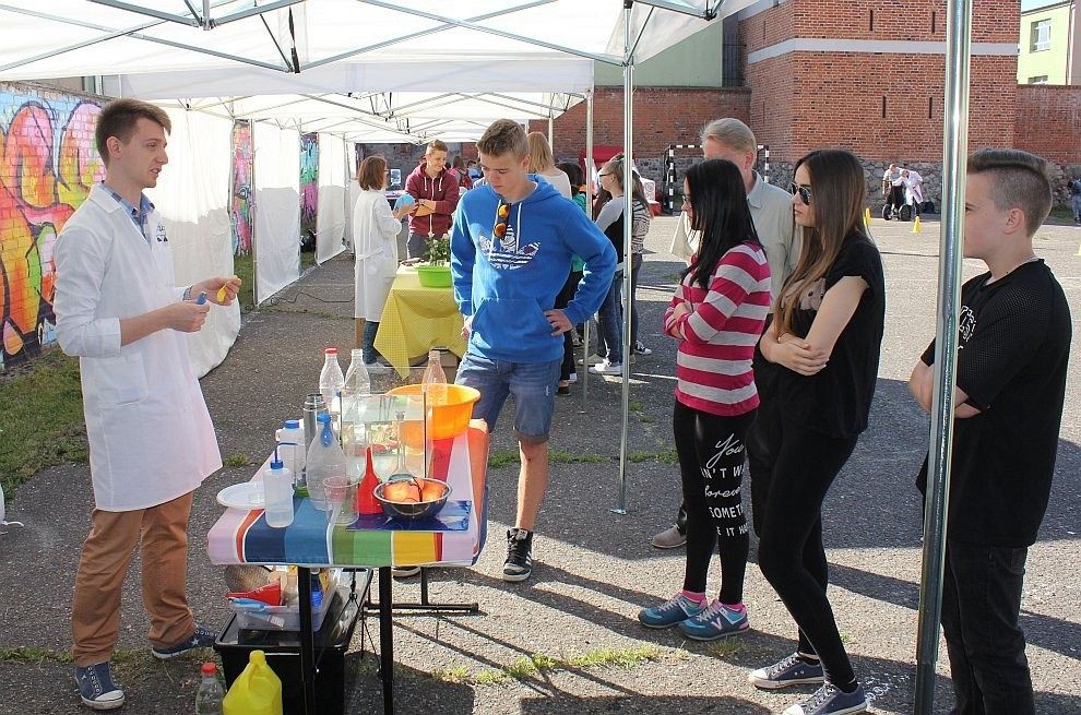 Dla uczniów podzielonych na małe grupy przygotowanych zostało 7 stacji tematycznych: fizyka (ciśnienie, temperatura, elektryczność, optyka), chemia (kuchenne eksperymenty, kryminalistyka), warsztaty – równowaga (jazda segweyem), zajęcia animacyjne (bańki mydlane), zabawy ruchowe (trampolina), robotyka i specjalny pokaz z ogniem.