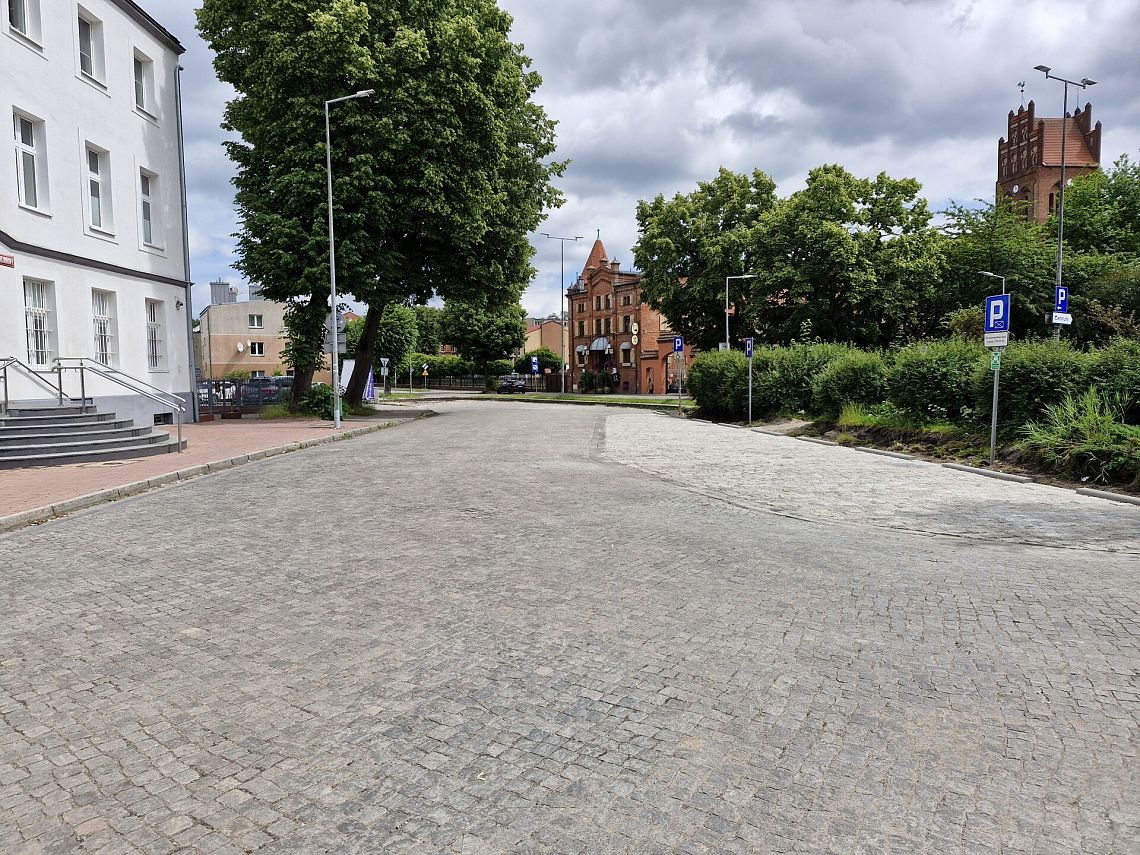 Drogowcy usunęli starą nawierzchnię asfaltową, oczyścili bruk, uzupełnili braki w kostce oraz w kilku miejscach wyrównali teren, poprawiając komfort użytkowania nawierzchni zarówno dla pieszych, jak i kierowców. Efekt końcowy przywraca dawny charakter tego fragmentu miasta i nawiązuje do jego historycznego dziedzictwa.