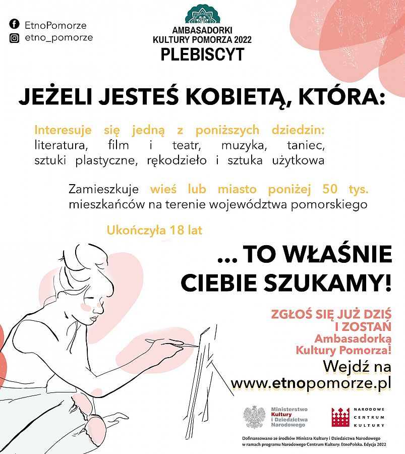 Serdecznie zapraszamy do udziału w drugiej edycji plebiscytu na “Ambasadorki Kultury Pomorza 2022”.