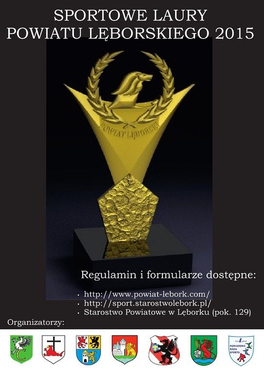 Powiatowa Rada Sportu w Lęborku przy współpracy ze Starostwem Powiatowym w Lęborku oraz Gminami Powiatu Lęborskiego zaprasza do udziału w IX edycji plebiscytu „Sportowe Laury Powiatu Lęborskiego 2015 ”. Konkurs trwa od 14 grudnia 2015 do 8 stycznia 2016 r.