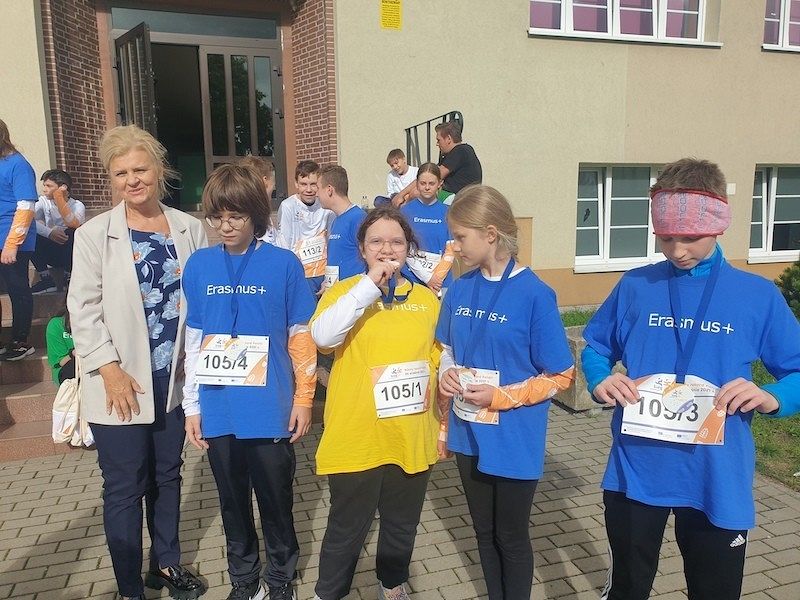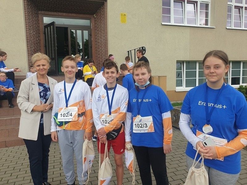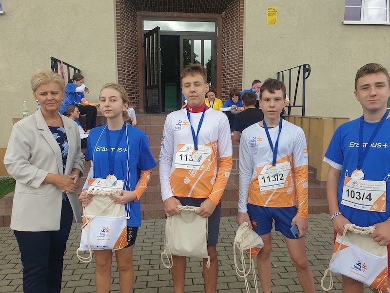 Z „Jedynki” startowały 4 drużyny w składzie: Klasa 5a: Agata Kurzydło, Maja Tutakowska, Aleksander Szewczyk, Cezary Wetta, z kl.8a: Maja Majak, Oskar Korszeń, Maksymilian Maszota, Jakub Miszka, z kl.8b: Milena Młyńska, Kacper Kamiński, Piotr Szczegielniak, Oskar Płóciennik, oraz z kl.4a i 8c Jan Romanowski, Kacper Antoniewicz, Zuzanna Przygocka, Hanna Mally; W biegu uczniów spierali nauczyciele - koordynator projektu Erasmus+ Katarzyna Wróblewska - Kurzydło oraz Michał Kościółek.