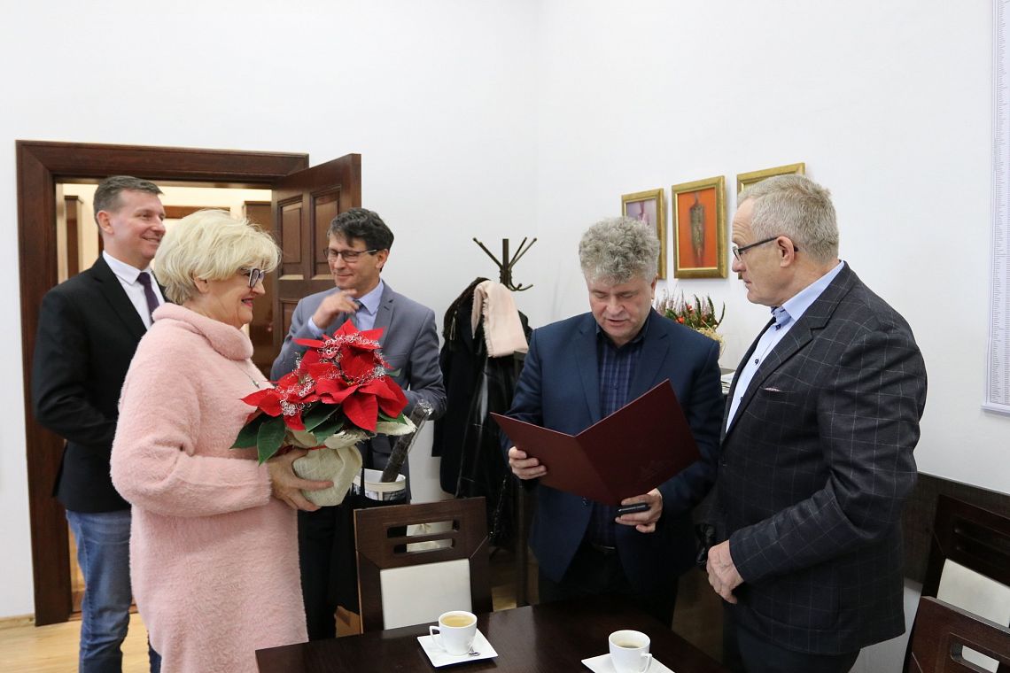 Burmistrz Witold Namyślak oraz jego zastępcy Jerzy Pernal i Teresa Ossowska-Szara osobiście podziękowali panu Zdzisławowi Kordzie za lata pracy i zaangażowanie w pomoc osobom potrzebującym wsparcia oraz bardzo dobrą współpracę z samorządem. Życzyli także p. Kordzie dużo zdrowia, realizacji pasji i zainteresowań oraz wypoczynku w tym nowym etapie życia.