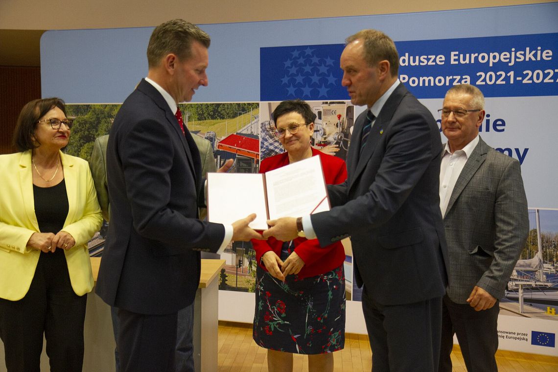 Marszałek Województwa Pomorskiego - Mieczysław Struk przekazał 12 maja 2023 r. decyzję o przyznaniu 17.5359.68 EUR dla Miejskiego Obszaru Funkcjonalnego (MOF) Lęborka. Uchwałę Zarządu Województwa Pomorskiego o alokacji środków w imieniu Lidera MOF – Burmistrza Miasta Lęborka - Witolda Namyślaka odebrał Sekretarz Miasta Lęborka – Marian Kurzydło z członkami MOF Lęborka: Starostą Powiatu Lęborskiego - Alicją Zajączkowską, Wójtem Gminy Nowa Wieś Lęborska - Zdzisławem Chojnackim oraz Z-cą Wójta Gminy Łęczyce - Bożeną Pruchniewską.