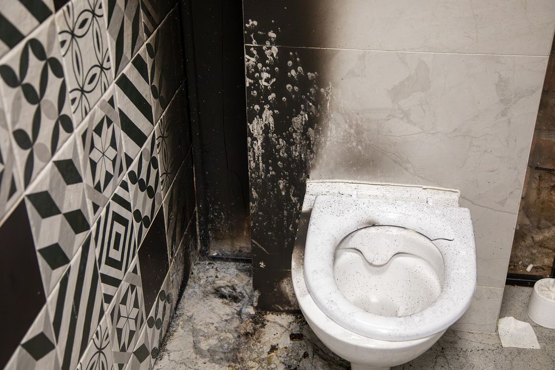 W obiekcie doszło do osmalenia ściany i sufitu, nadpalenia deski sedesowej i uszkodzenia glazury. Wstępnie szkody zostały oszacowane na ok. 5 tys. zł.