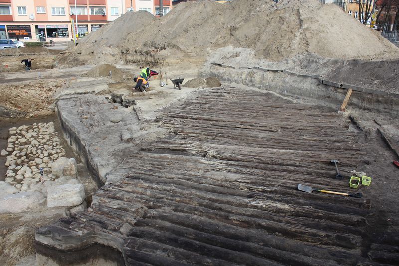 Maciej Ignasiak - pracownik firmy archeologicznej wspomniał również o odnalezieniu średniowiecznej drogi, która prowadziła do kościoła św. Jakuba, i została ułożona prawdopodobnie przed lokacją Lęborka.