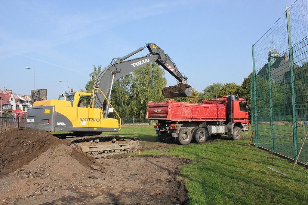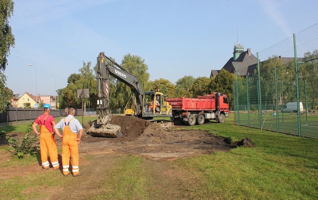 Prace ziemne na boisku przy Gimnazjum nr 2