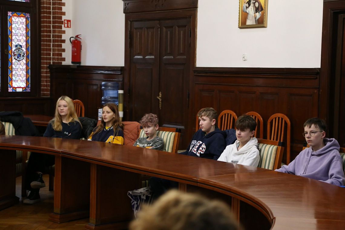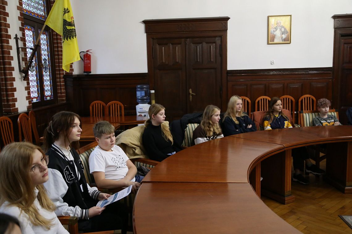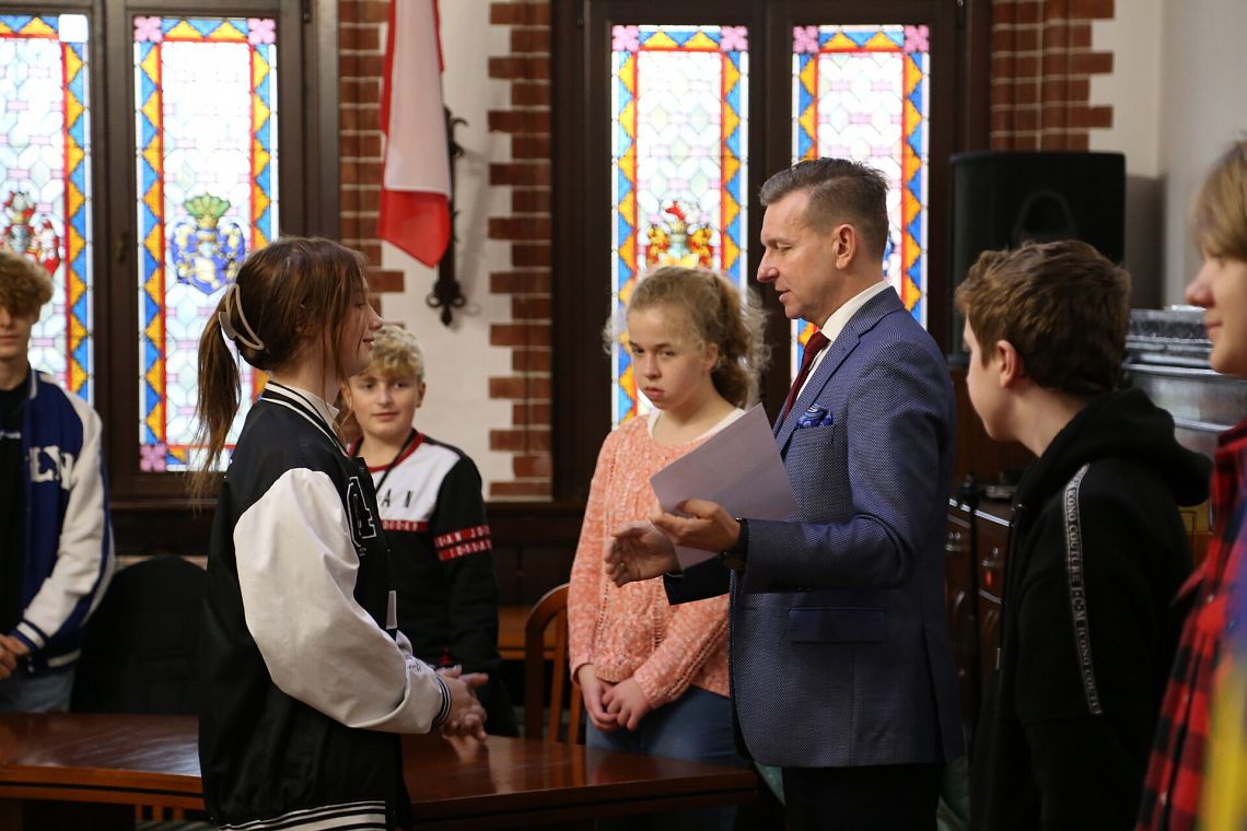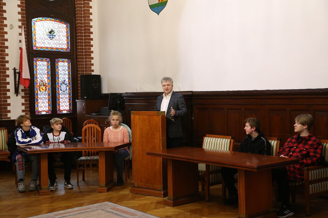Podczas spotkania w Urzędzie Miejskim o zadaniach realizowanych przez urząd oraz o pracy urzędników opowiedział młodzieży sekretarz miasta Marian Kurzydło. Uczniowie zwiedzili również budynek ratusza, między innymi Salę Rajców i skarbiec.