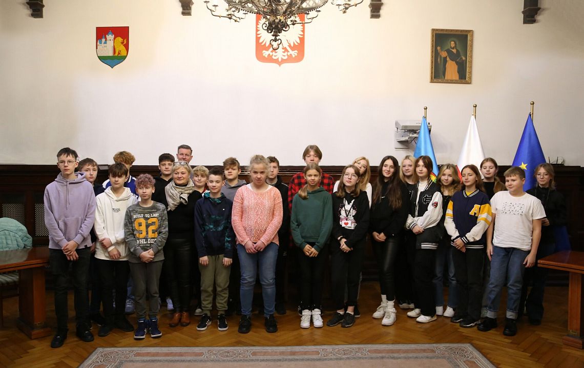 W dniu 16 listopada Urząd Miejski w Lęborku odwiedzili ósmoklasiści ze Szkoły Podstawowej nr 1. Uczniowie z klasy VIII d razem ze swoją wychowawczynią, panią Marzeną Kurzydło, gościli w lęborskim ratuszu. W Sali Rajców powitał ich burmistrz Witold Namyślak.