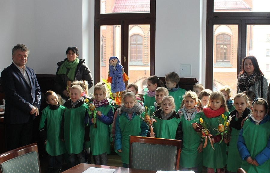 Pierwszy Dzień Wiosny w Lęborku rozpoczął się od wizyty dzieci z Przedszkola nr 6 w gabinecie Burmistrza Miasta Witolda Namyślaka. Przedszkolaki przygotowały wiosenne życzenia, piosenki oraz świąteczne dekoracje, a otrzymały słodkie upominki.