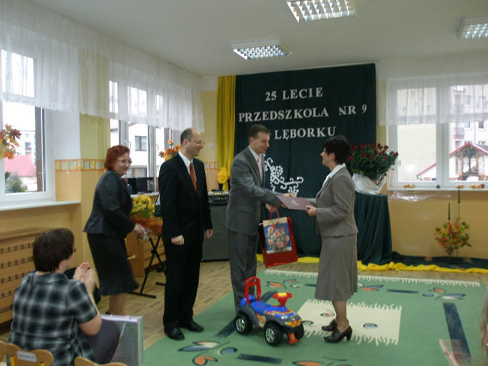W dniu 24 października 25- lecie istnienia obchodziło uroczyście Przedszkole Nr 9 w Lęborku. Z tej okazji nie zabrakło urodzinowego tortu, prezentów dla dzieci ufundowanych przez Radę Rodziców i Władze Miasta oraz montażu słowno-muzycznego "Podróż po Europie" w wykonaniu najstarszych przedszkolaków i byłych absolwentów.