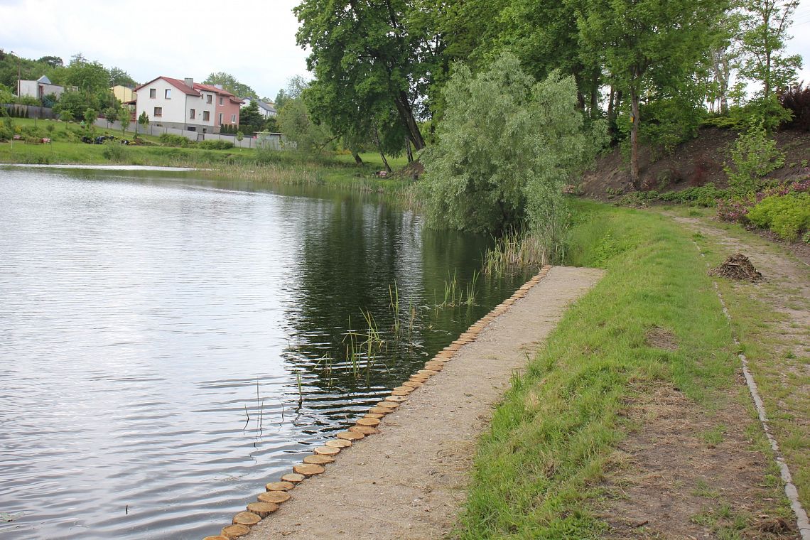 Elementem nowego systemu odprowadzania wód opadowych było włączenie do niego awaryjnego kanału przelewowego ze stawu „Morskie Oko” oraz umocnienie brzegu stawu sprzyjającego rekreacji i wypoczynku nad wodą. Koszt wszystkich prac wyniósł 261.744 złotych, z czego 50% stanowiła dotacja z Programu Operacyjnego „Rybactwo i Morze” w wysokości 130.872 zł.