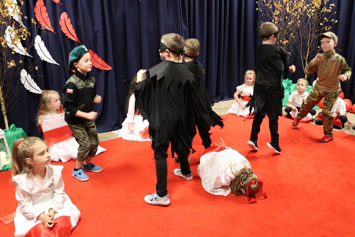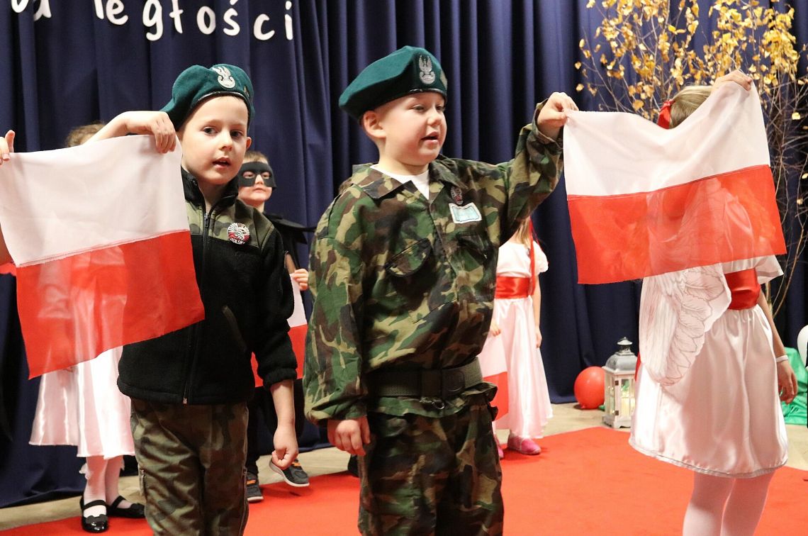 Dzieci z dumą przypomniały wszystkim, co znaczy być Polakiem, dlaczego 11 listopada jest tak ważną datą w naszej historii oraz czym są wolność, pokój i miłość do Ojczyzny. Przedszkolaki przyozdobione w barwy narodowe – z ogromnym zaangażowaniem zaprezentowały wiersze i pieśni patriotyczne. Rodzice i dziadkowie oklaskiwali występy dzieci, nie kryjąc emocji i wzruszenia.