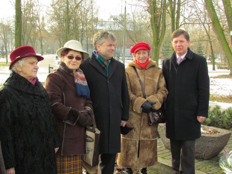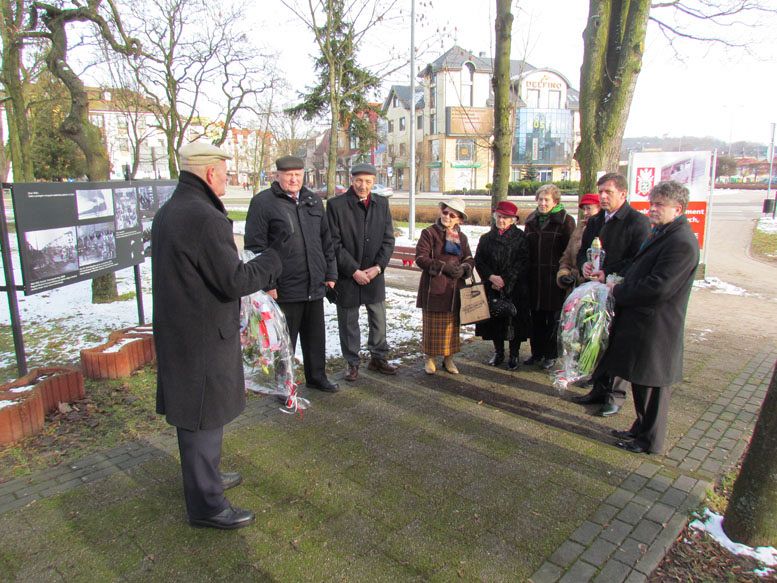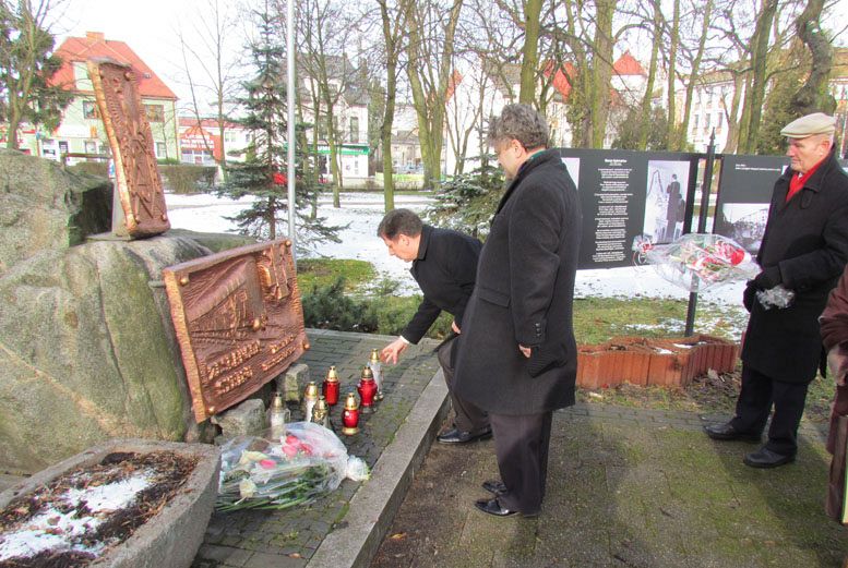 Kwiaty pod pomnikiem Zesłańców Sybiru złożyli Burmistrz Miasta - Witold Namyślak, wicestarosta - Ryszard Wenta oraz lęborscy kombatanci i Sybiracy.