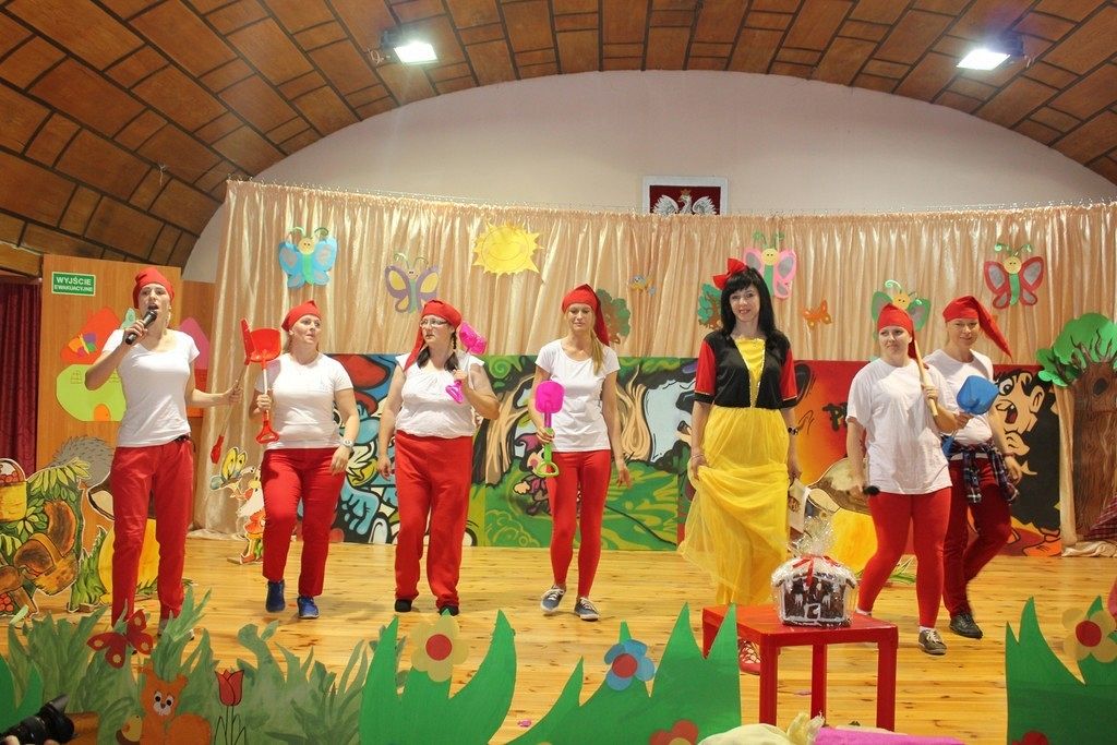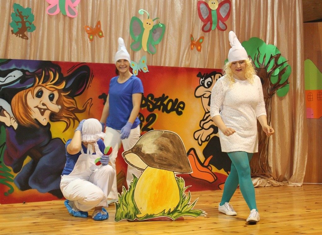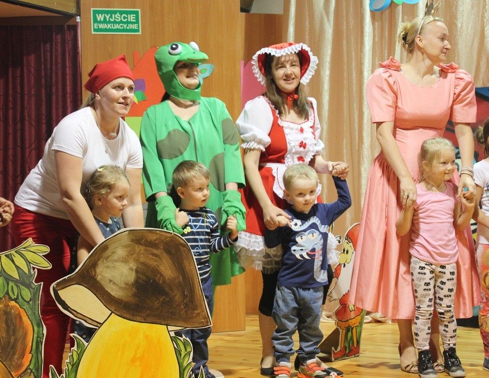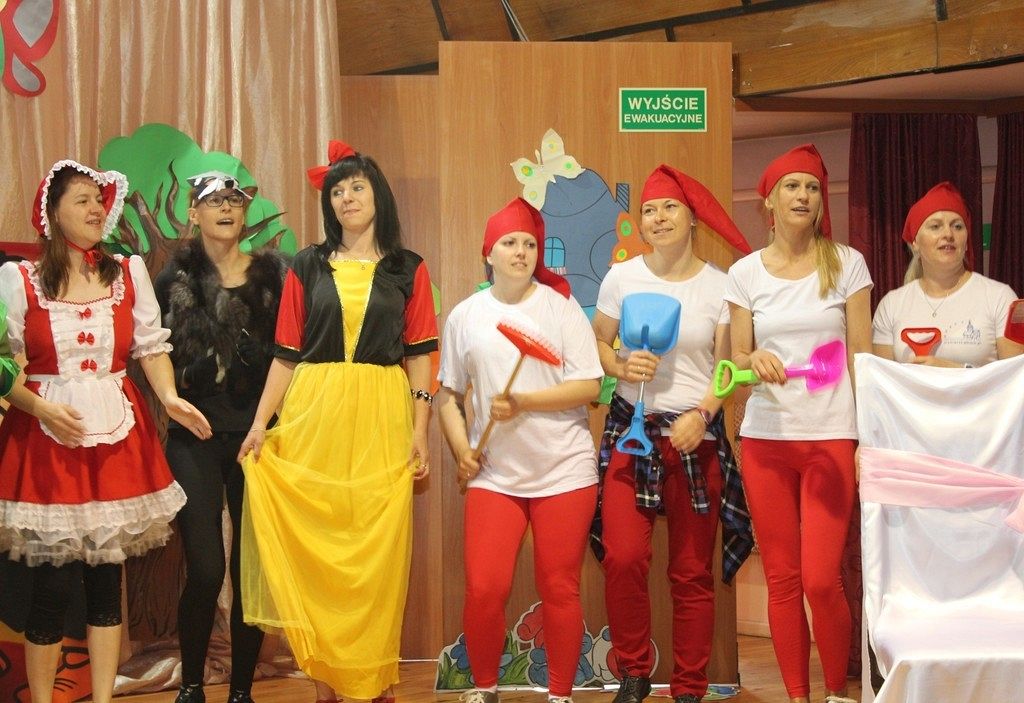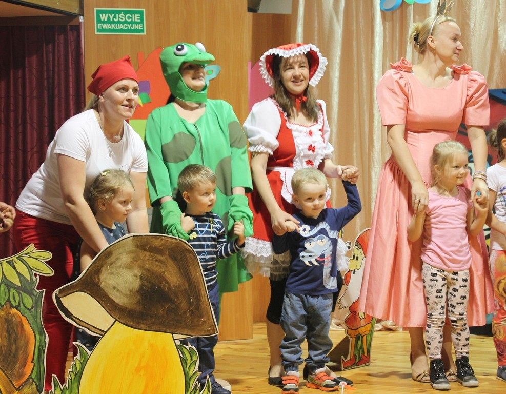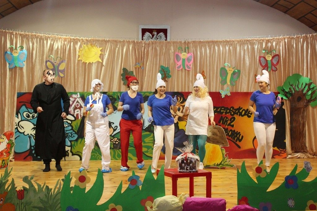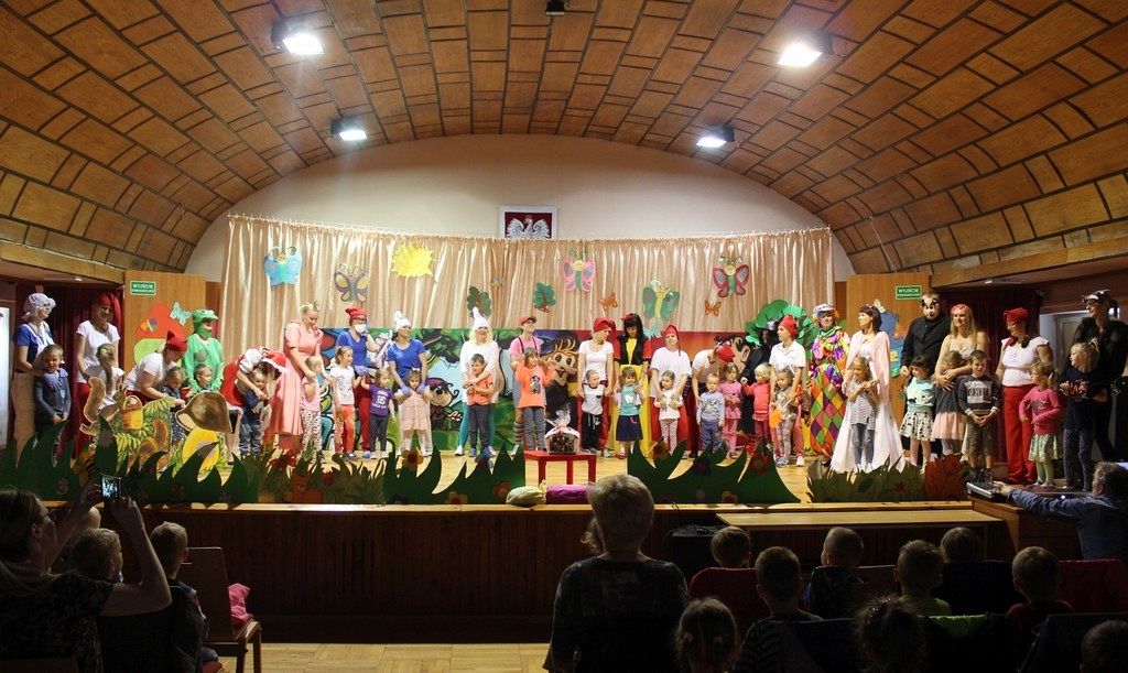 Inscenizację wyreżyserowała nauczycielka Karina Wysocka, a w role bajkowych postaci wcielili się rodzice dzieci. W przedstawieniu wzięło udział 23 rodziców, głównie mam i jeden tata. Próby odbywały się w przedszkolu i sprawiły wszystkim wiele radości i zabawy. Scenografię do przedstawienia przygotował Pan Patryk Łukaszuk, a dzięki uprzejmości dyrektora Szkoły Muzycznej Pana Wojciecha Siedlika przedstawienie odbyło się na prawdziwej scenie. Wydarzenie dostarczyło wiele wrażeń dzieciom, pracownikom przedszkola i rodzicom.