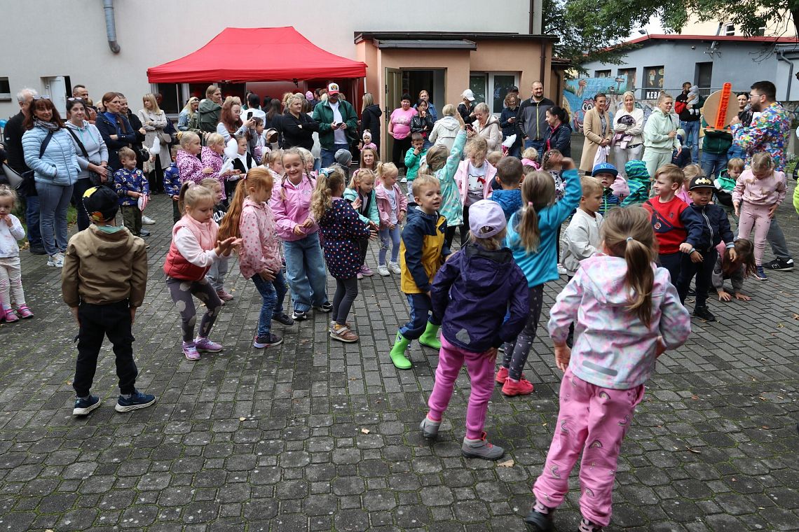 Wspólne animacje poprowadził animator Amigol, który porwał dzieci do tańca, śmiechu i aktywności ruchowych. Dużą frajdę sprawił dmuchany zamek, który przez cały czas cieszył się ogromnym zainteresowaniem. W ogrodzie przedszkolnym przygotowano również smaczny poczęstunek, który pozwolił nabrać sił między kolejnymi zabawami i sportowymi wyzwaniami.
