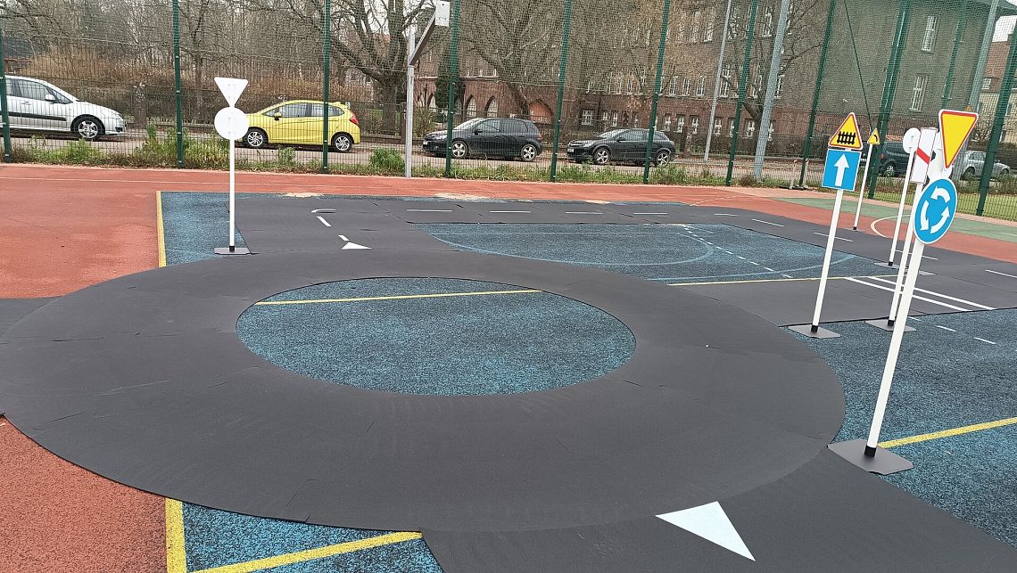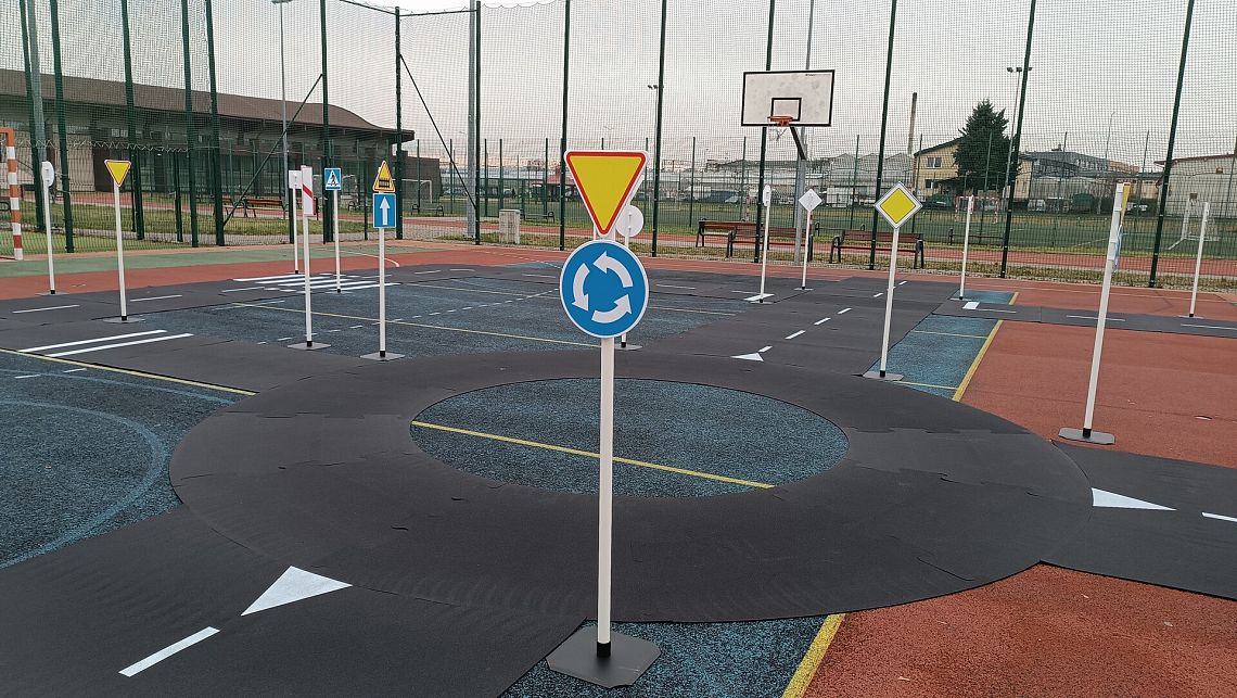 Na kompleksie sportowym przy boisku przy Szkole Podstawowej nr 7 stanęło dzisiaj mobilne miasteczko ruchu drogowego! To nasza nowa przestrzeń do nauki i zabawy, stworzona z myślą o bezpieczeństwie najmłodszych użytkowników dróg.