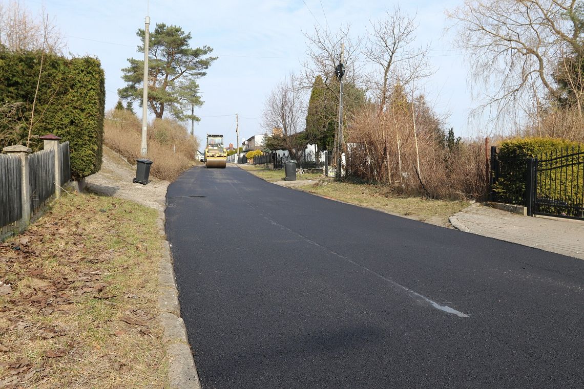 Analogiczny zakres robót zrealizowano również na ok. 50 mb ulicy Leśnej, gdzie przeprowadzono wszystkie etapy prac - od frezowania starej nawierzchni po wykonanie nowej warstwy ścieralnej i zabezpieczenie krawędzi.