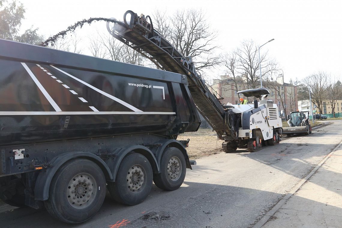 Na ulicy Skoczylasa wykonano I etap remontu na odcinku o długości około 100 mb. Roboty rozpoczęły się od frezowania zużytej, zniszczonej warstwy asfaltu. Kolejnym etapem było spryskanie nawierzchni emulsją asfaltową, która pełni funkcję warstwy wiążącej, poprawiającej przyczepność nowych warstw bitumicznych. Ułożona została wyrównawcza warstwa asfaltu, której zadaniem było zniwelowanie nierówności i nadanie nawierzchni odpowiedniego profilu i ponownie zastosowano skropienie emulsją asfaltową, co zapewniło właściwe połączenie kolejnych warstw. Następnie wykonano warstwę ścieralną, najbardziej eksploatowaną część nawierzchni. Na zakończenie prac przeprowadzono uszczelnienie krawędzi nowo ułożonej nawierzchni specjalną zalewą asfaltową, co zapobiega wnikaniu wody i zwiększa trwałość wykonanej naprawy.