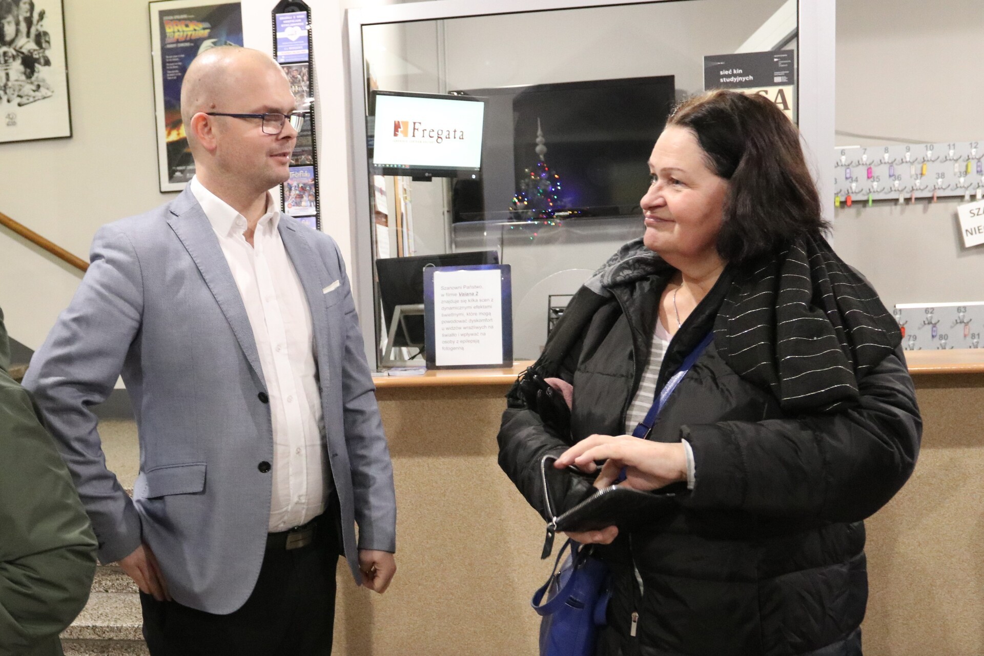 Dodatkową atrakcją czwartkowego wydarzenia było rozlosowanie upominków wśród publiczności. Burmistrz miasta przekazał kalendarze miejskie, upominki ufundowała też firma Profarm Lębork. W klimat filmowy wprowadziła publiczność Aleksandra Raczyńska, której towarzyszyła przewodnicząca Gminnej Rady Seniorów Ewa Kłosowska.