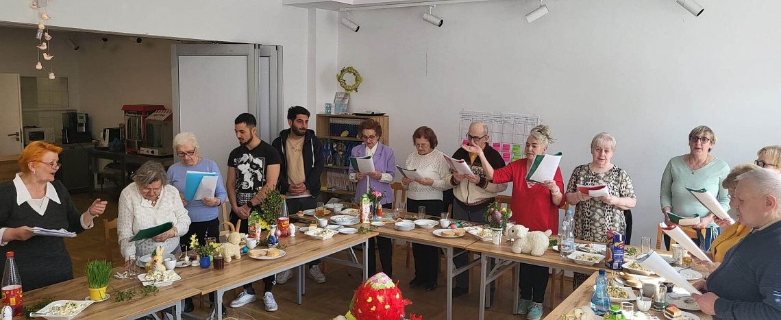 W Klubie Osiedlowym BAZA odbyło się spotkanie świąteczne Klubu Seniora. Podczas odświętnego spotkania przy poczęstunku uczestnicy świetnie się bawili śpiewając i zapraszając do tej aktywności zaproszonych gości: burmistrza Witolda Namyślaka, sekretarza Marian Kurzydło oraz kierownika Miejskiego Ośrodka Pomocy Społecznej Elżbiety Michalskiej.