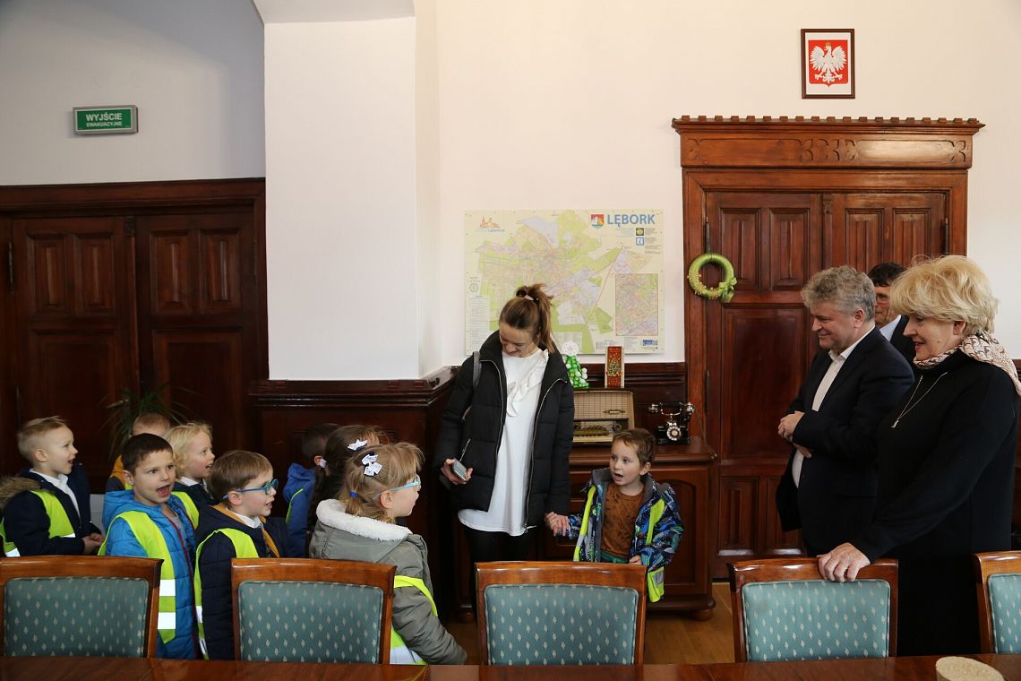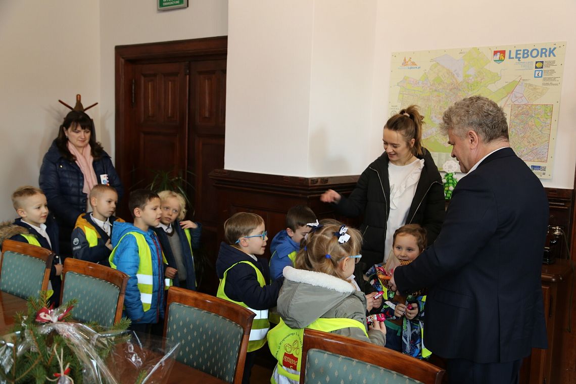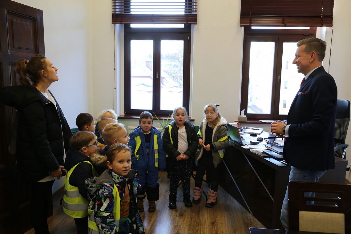 Przedszkolaków przyjął burmistrz Witold Namyślak wraz z zastępcami Jerzym Pernalem i Teresą Ossowską-Szarą, którzy poczęstowali sympatycznych gości słodkościami.