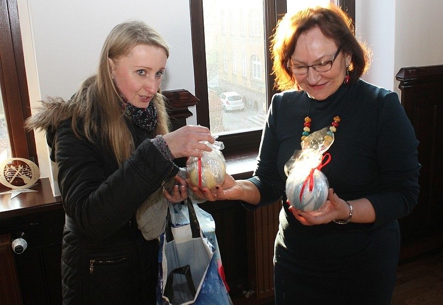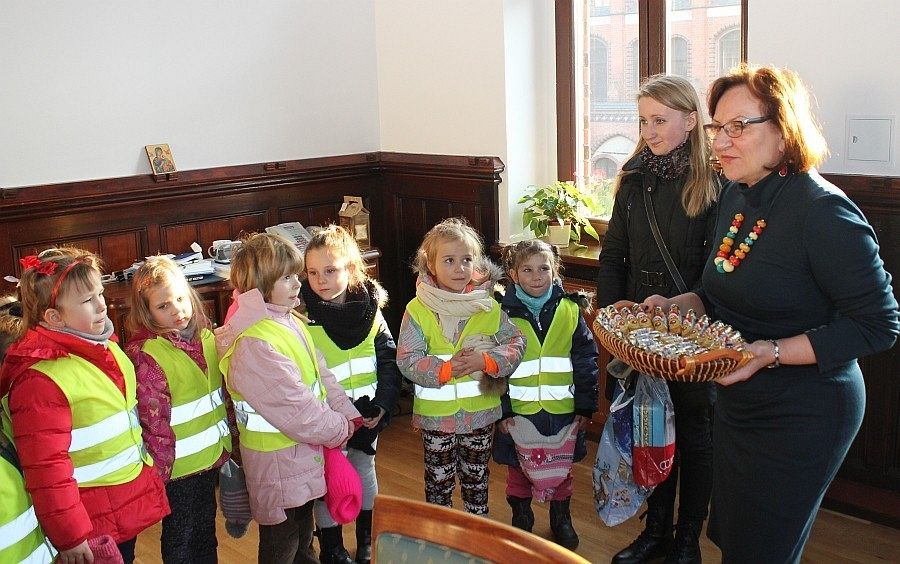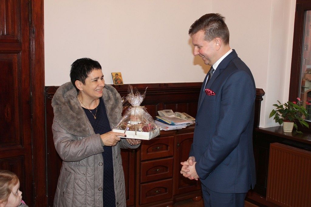 W czwartek z kolei wizytę złożyły dzieci z Przedszkola nr 2, których powitał sekretarz miasta Marian Kurzydło. Przedszkolaki zaśpiewały specjalnie przygotowany na to spotkanie utwór muzyczny. Nie obyło się bez upominków dla Burmistrza. Ręcznie wykonany ekologiczny stroik został przekazany na ręce sekretarza miasta. Na koniec spotkania maluchy otrzymały słodkie mikołaje.