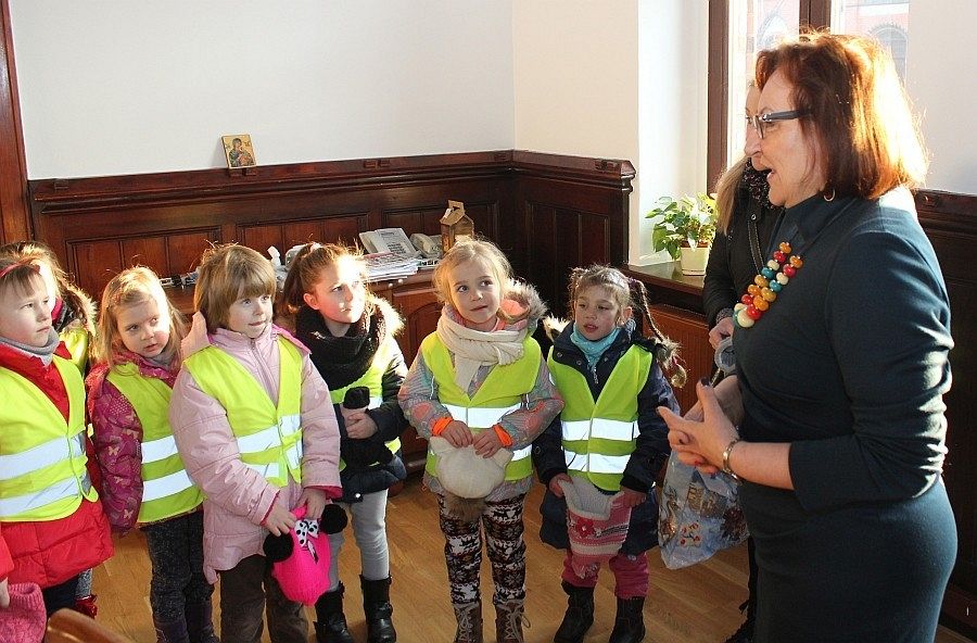 W środę ratusz odwiedzili mali goście z Przedszkola nr 5. Wizyta miała charakter świąteczny, a przedszkolaków przyjęła doradca burmistrza Alicja Zajączkowska. Były kolędy, życzenia, słodkości i piękne prezenty – ręcznie wykonane przez rodziców przedszkolaków bombki.