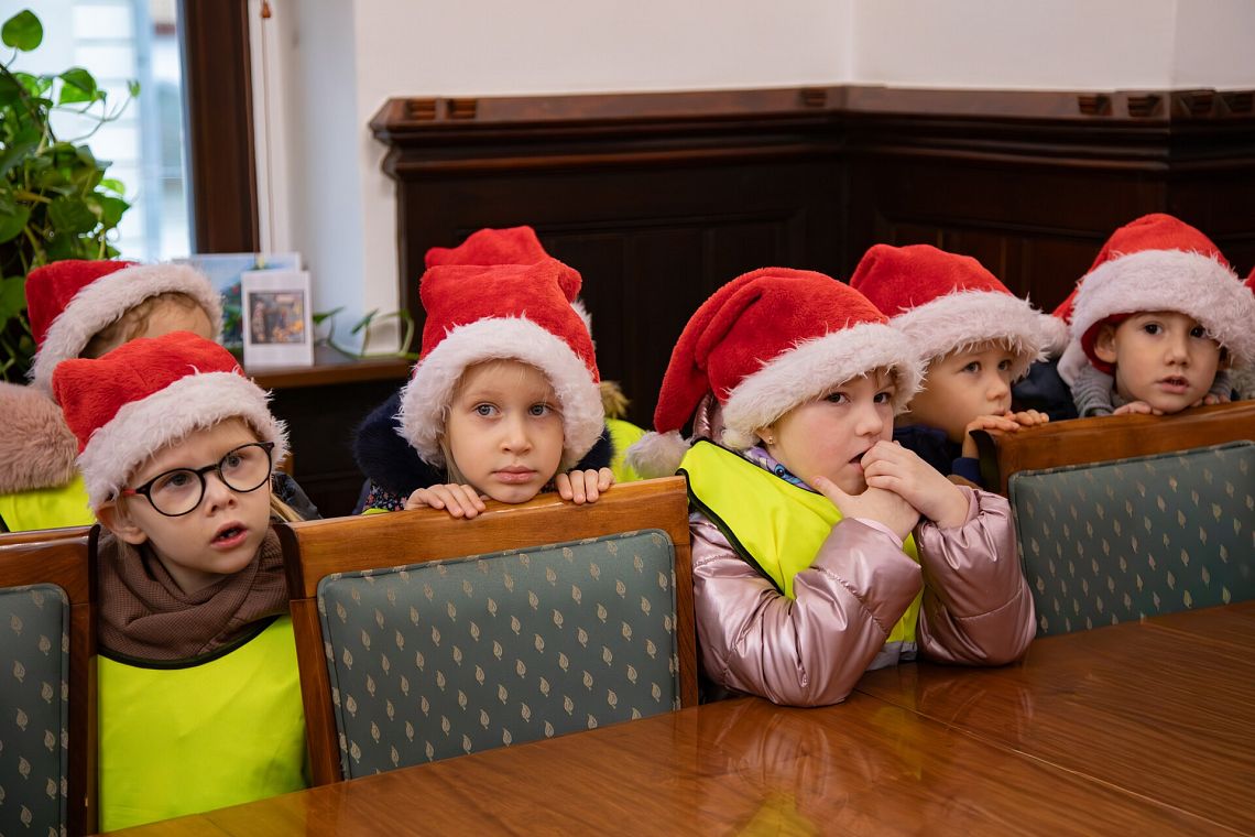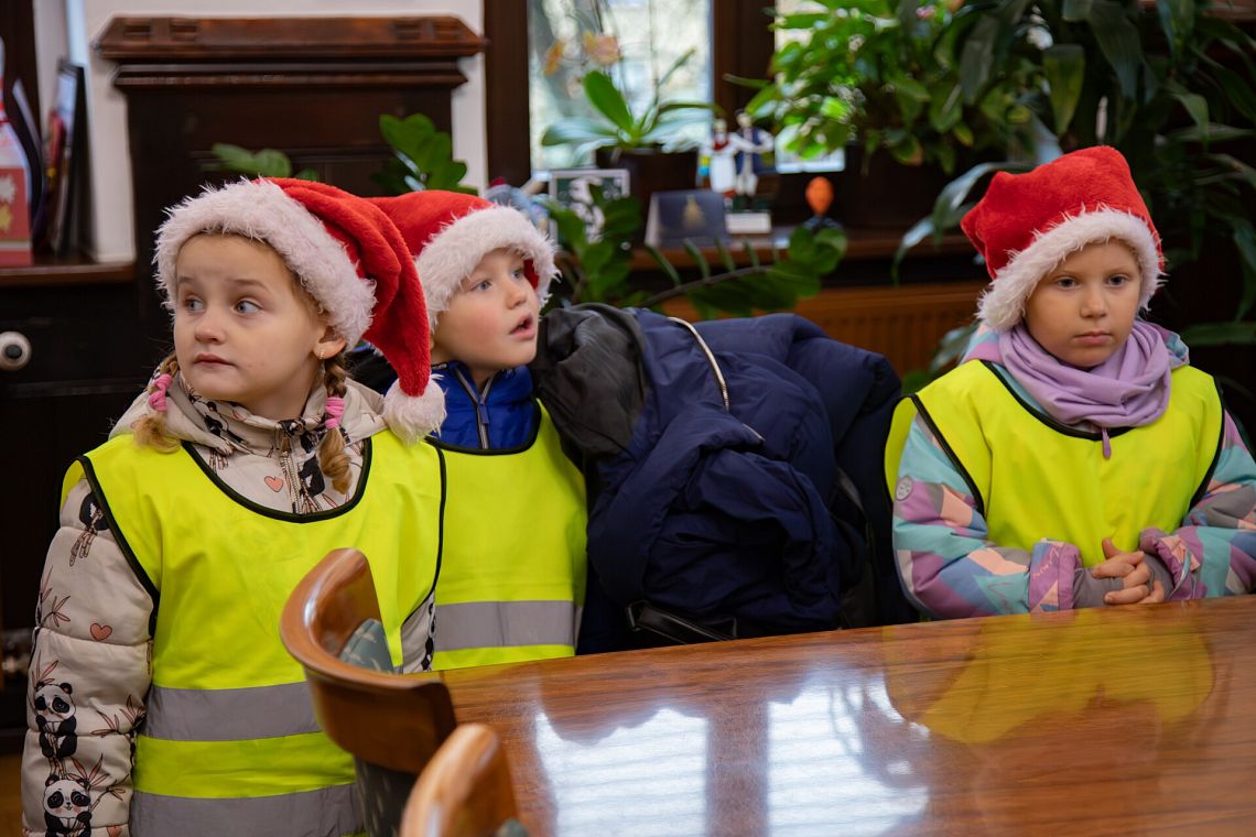 W przedświątecznej atmosferze ratusz odwiedziły dzieci z Przedszkola nr 1, Przedszkola nr 5 oraz Przedszkola nr 10. Przedszkolaki złożyły Burmistrzowi świąteczne życzenia, obejrzały jego gabinet i otrzymały słodką niespodziankę.