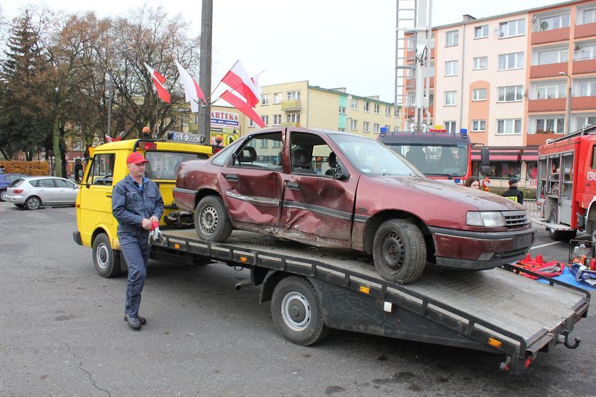 Straż Pożarna z jednostek Lębork i Nowa Wieś Lęborska zaprezentowała swój nowy sprzęt: wozy bojowe, drabinę i sprzęt ratowniczy. W południe strażacy pokazali inscenizację ratownictwa drogowego na prawdziwym samochodzie, z którego wydobywali ofiarę wypadku - pozoranta.