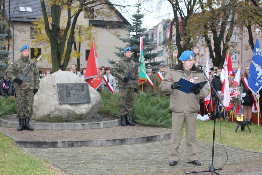 Pod Obeliskiem Niepodległości okolicznościowe przemówienie wygłosił Burmistrz Lęborka Witold Namyślak, a Apel Pamięci odczytał kapitan Sebastian Zębała. Nie zabrakło salwy honorowej i wzruszającej oprawy słowno-muzycznej przygotowanej przez uczniów z 5 klasy Szkoły Podstawowej nr 8 w Lęborku pod opieką Luizy Szatkowskiej. Uroczystości pod Obeliskiem zakończyła parada ułanów i innych grup rekonstrukcyjnych.