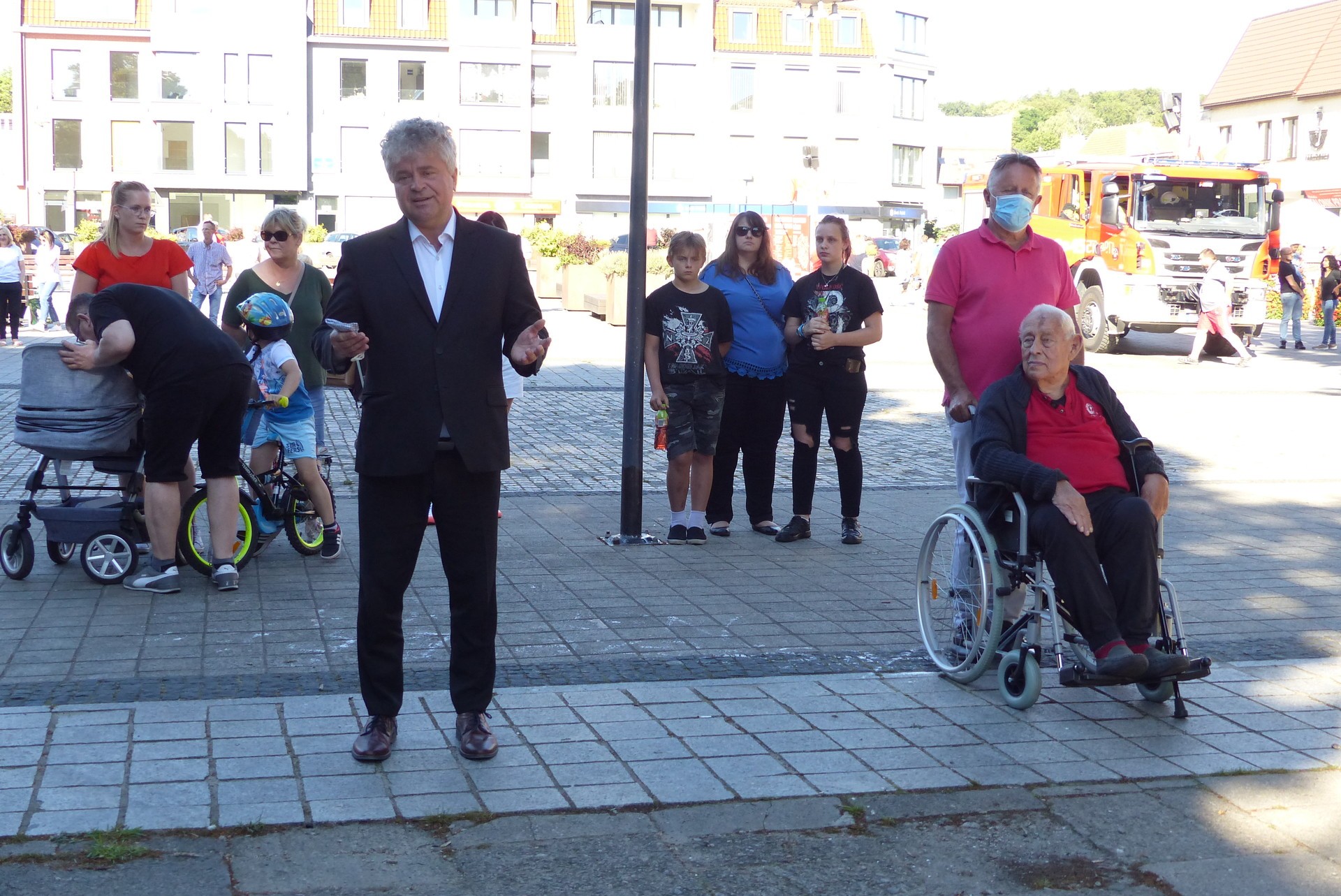 Burmistrz Witold Namyślak podziękował uczestnikom za przybycie oraz żywą pamięć o Powstaniu. Ciepłe słowa skierował do uczestnika powstania, dziś mieszkańca Lęborka pułkownika Janusza Kowalskiego oraz kombatanta, porucznika Stefana Dulko. Obaj weterani mimo zaawansowanego wieku osobiście przybyli na uroczystość.