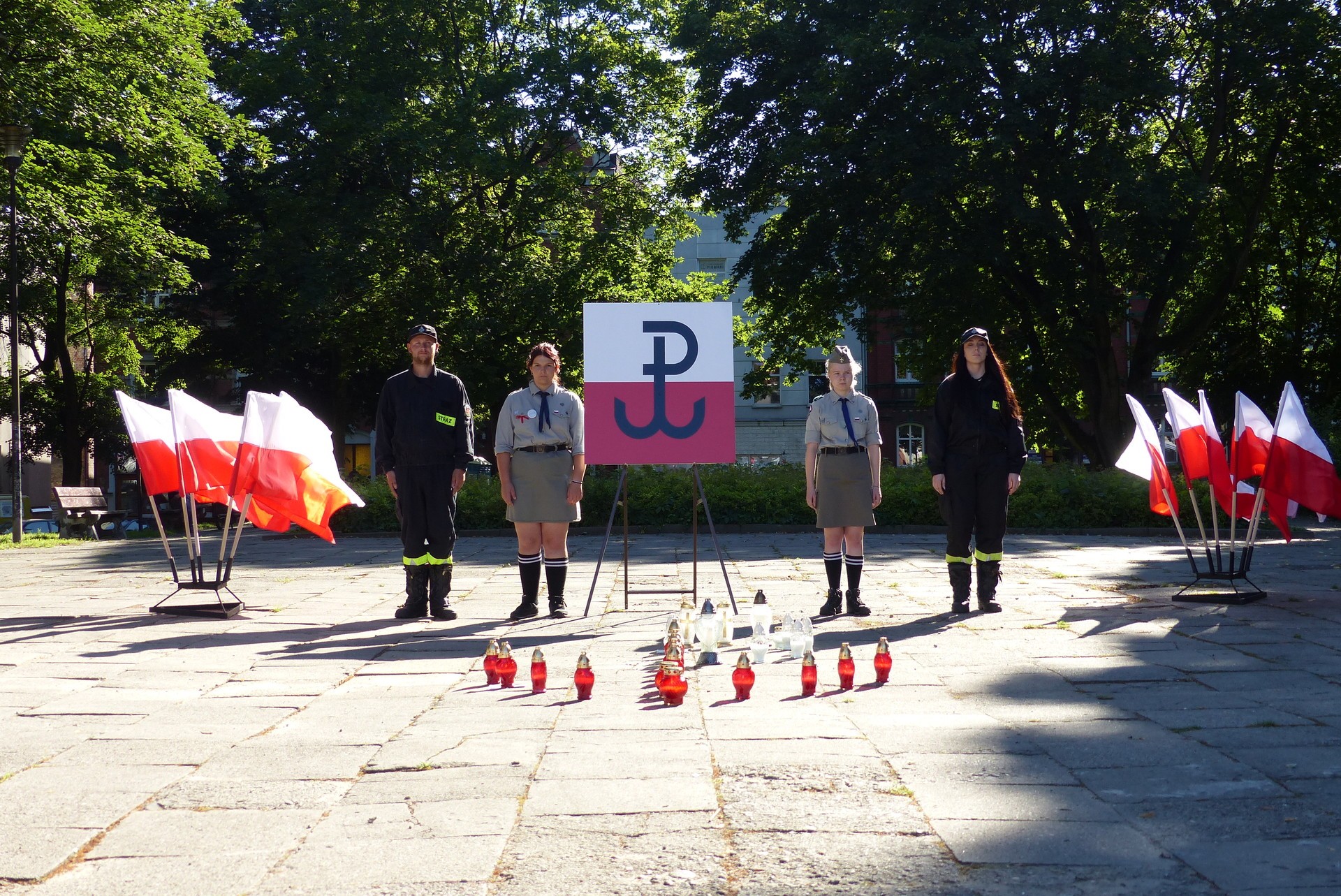 Honorową asystę przy symbolicznej tablicy Polski Walczącej zapewnili harcerze z Hufca Lębork oraz strażacy z Ochotniczej Straży Pożarnej w Lęborku.