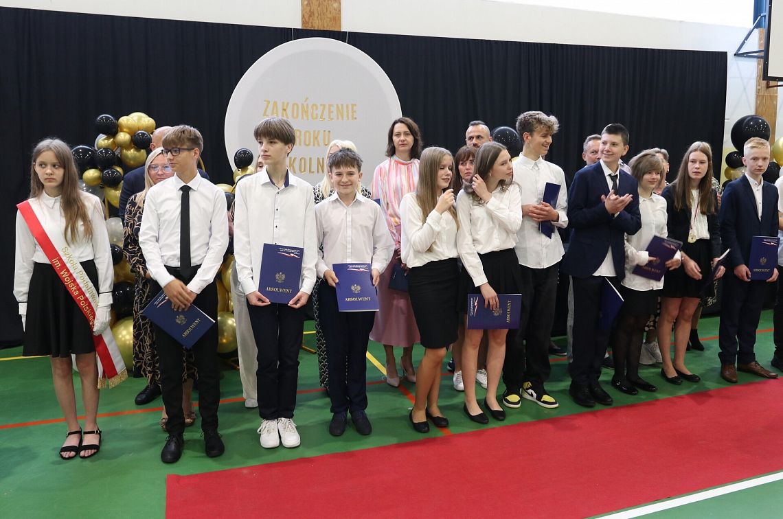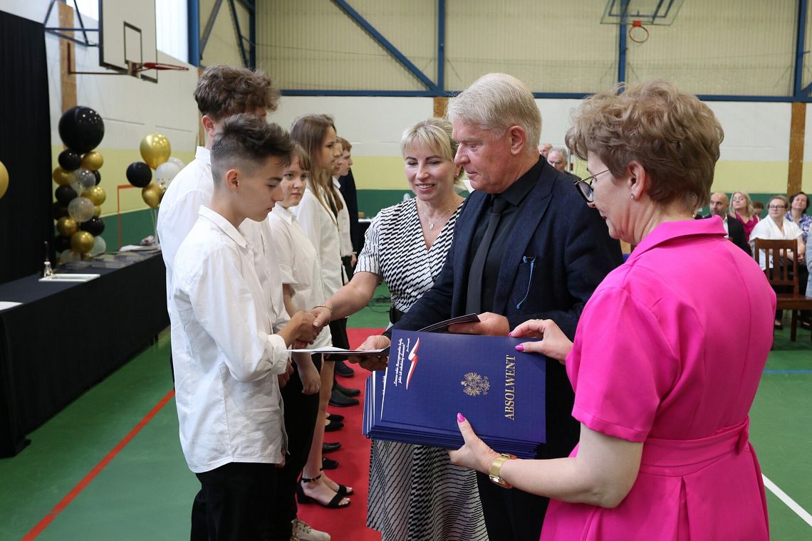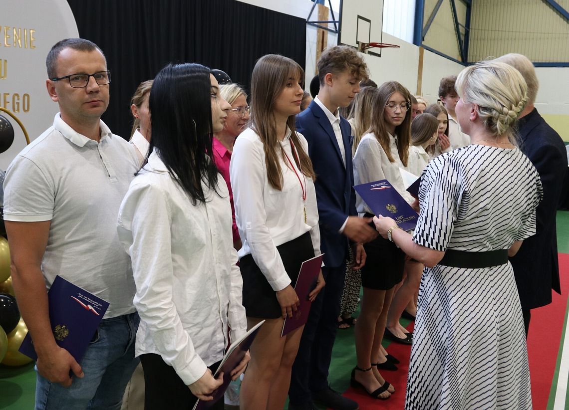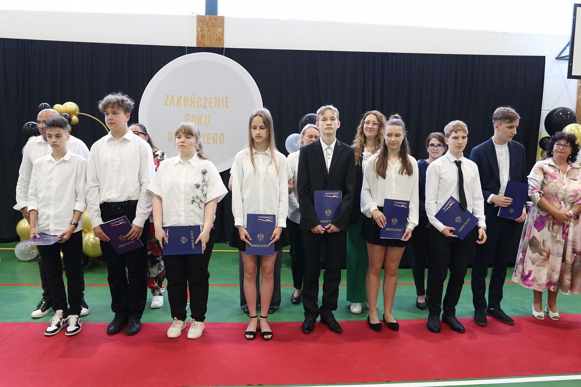 Głównym wydarzeniem uroczystości było wręczenie przez dyrektora szkoły Krzysztofa Wettę i wicedyrektor Izabelę Zarębę świadectw z wyróżnieniem dla uczniów, którzy wykazali się nie tylko wysokimi osiągnięciami i systematyczną pracą, ale także aktywnie angażowali się w życie szkoły poprzez różne działania pozalekcyjne. To właśnie oni stali się wzorem dla swoich rówieśników, inspirując ich do dążenia do sukcesu i doskonalenia się we wszystkich dziedzinach życia.