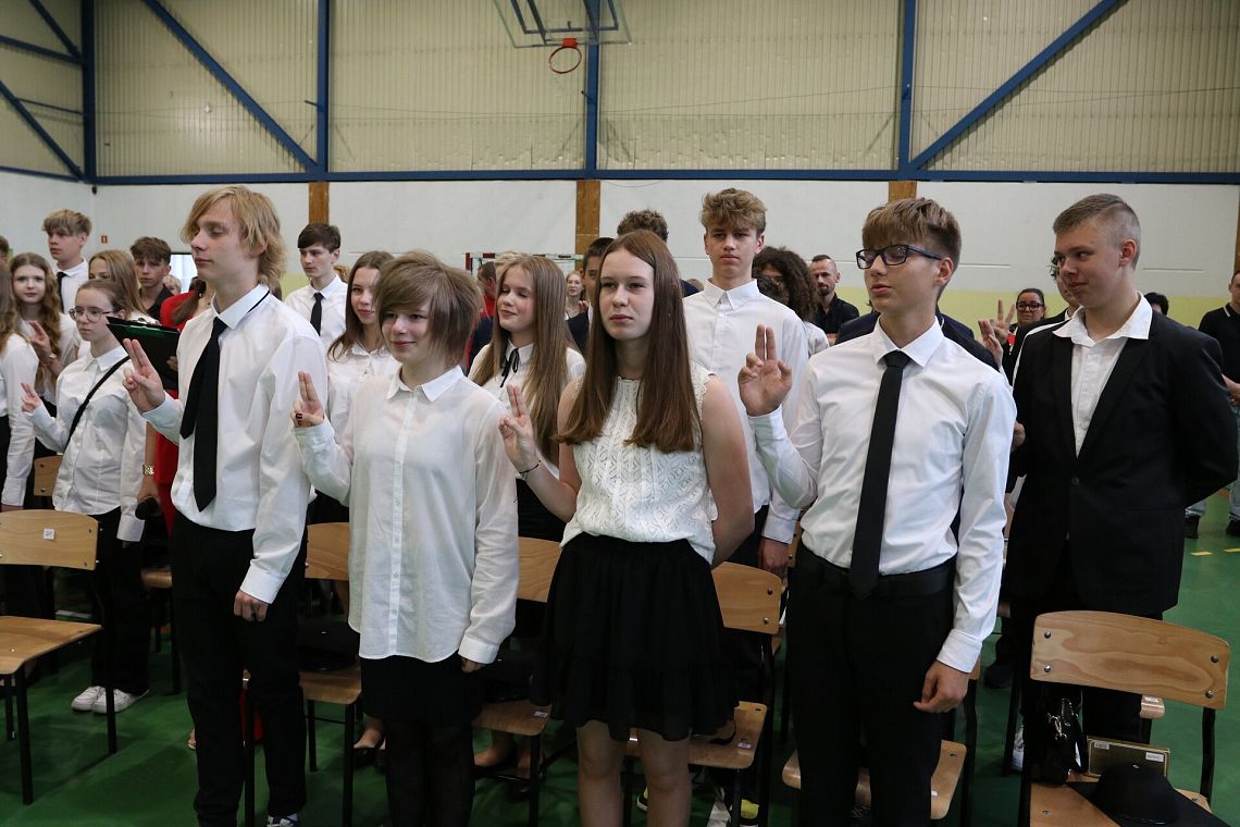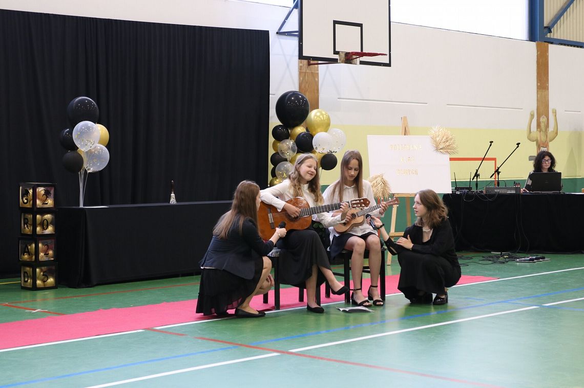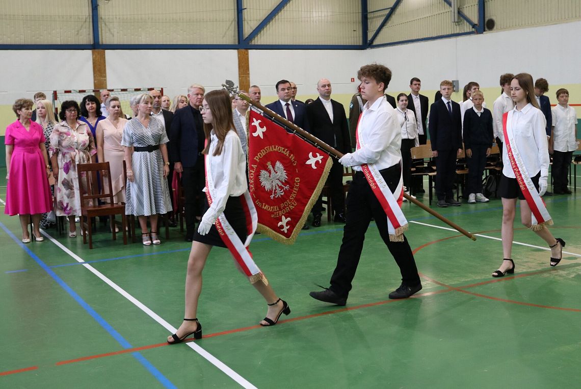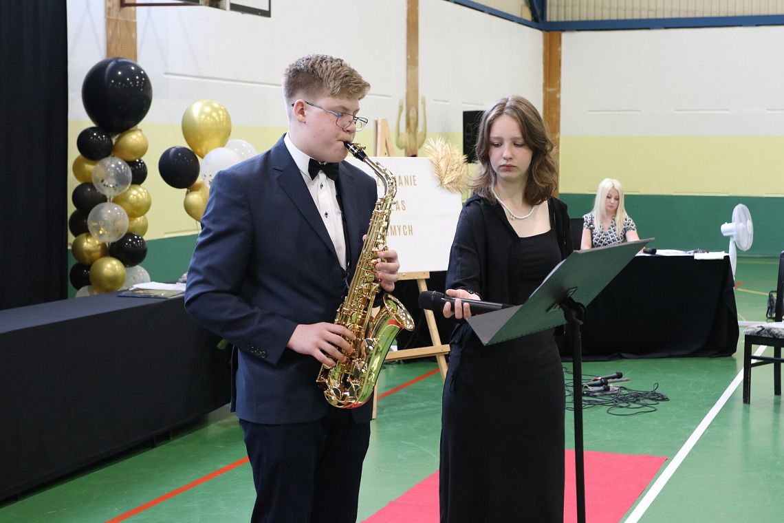 Głównym wydarzeniem uroczystości było wręczenie przez dyrektora szkoły Krzysztofa Wettę i wicedyrektor Izabelę Zarębę świadectw z wyróżnieniem dla uczniów, którzy wykazali się nie tylko wysokimi osiągnięciami i systematyczną pracą, ale także aktywnie angażowali się w życie szkoły poprzez różne działania pozalekcyjne. To właśnie oni stali się wzorem dla swoich rówieśników, inspirując ich do dążenia do sukcesu i doskonalenia się we wszystkich dziedzinach życia.