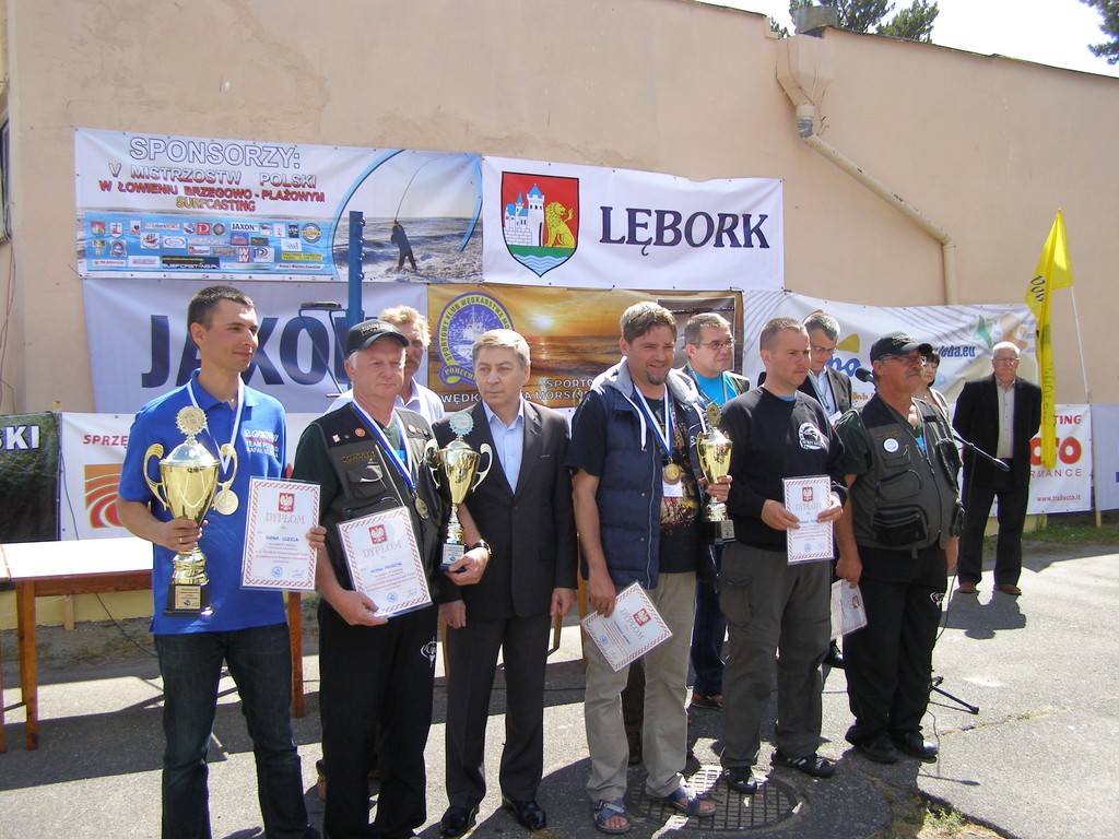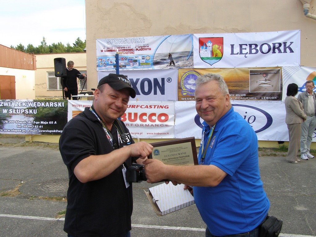 W dniach 20-22 czerwca br. na plażach Łeby odbyły się V Mistrzostwa Polski w łowieniu brzegowo - plażowym (surfcasting). Organizatorem był Sportowy Klub Wędkarstwa Morskiego "Pomuchel-Lębork". W mistrzostwach brało udział 40 zawodników z całego kraju, reprezentujących kluby sportowe i okręgi Polskiego Związku Wędkarskiego, w tym jedna kobieta Pani Iza Weiman reprezentująca klub Konger Poznań. Niestety pogoda podczas mistrzostw nie dopisała wędkarzom. Silny porywisty zachodni wiatr i mocno wzburzone morze nie sprzyjały dobrym braniom ryb. Wielkie podziękowania należą się wszystkim sponsorom, którzy przyczynili się do organizacji V Mistrzostw Polski w surfcastingu.