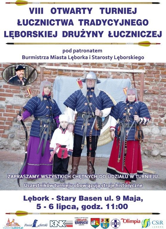 Lęborska Drużyna Łucznicza już po raz VIII organizuje Turniej Łucznictwa Tradycyjnego w Lęborku w kompleksie CSiR "Stary Basen" przy ul. 9-go Maja, na który serdecznie zapraszamy.