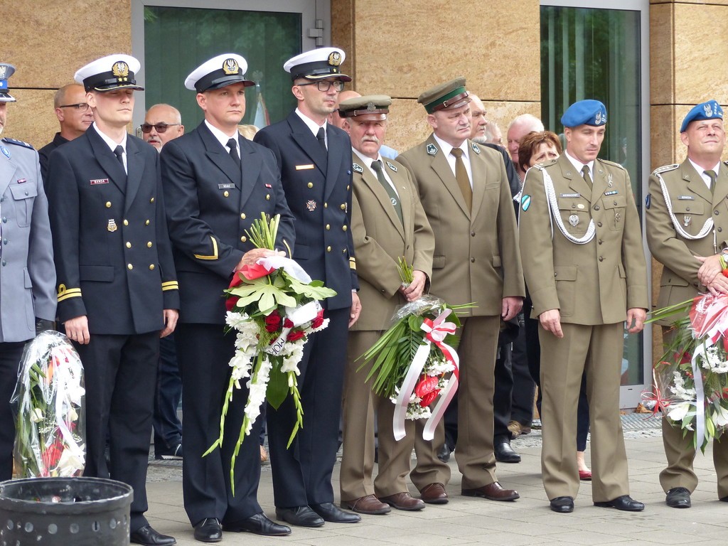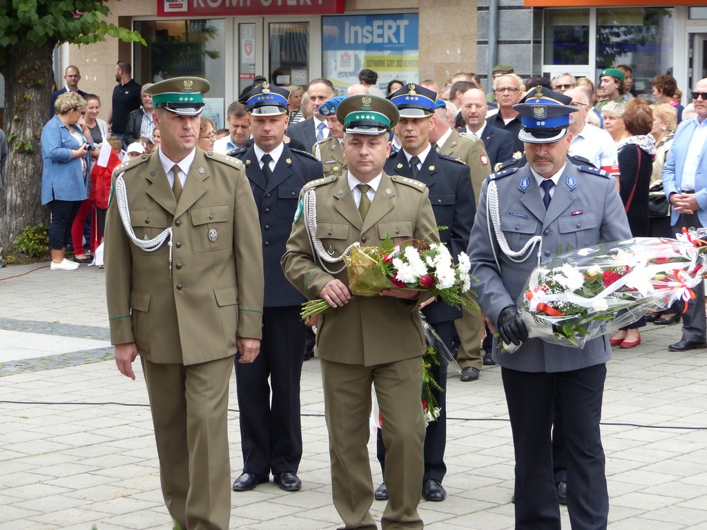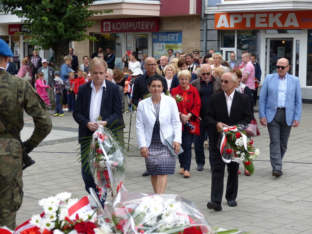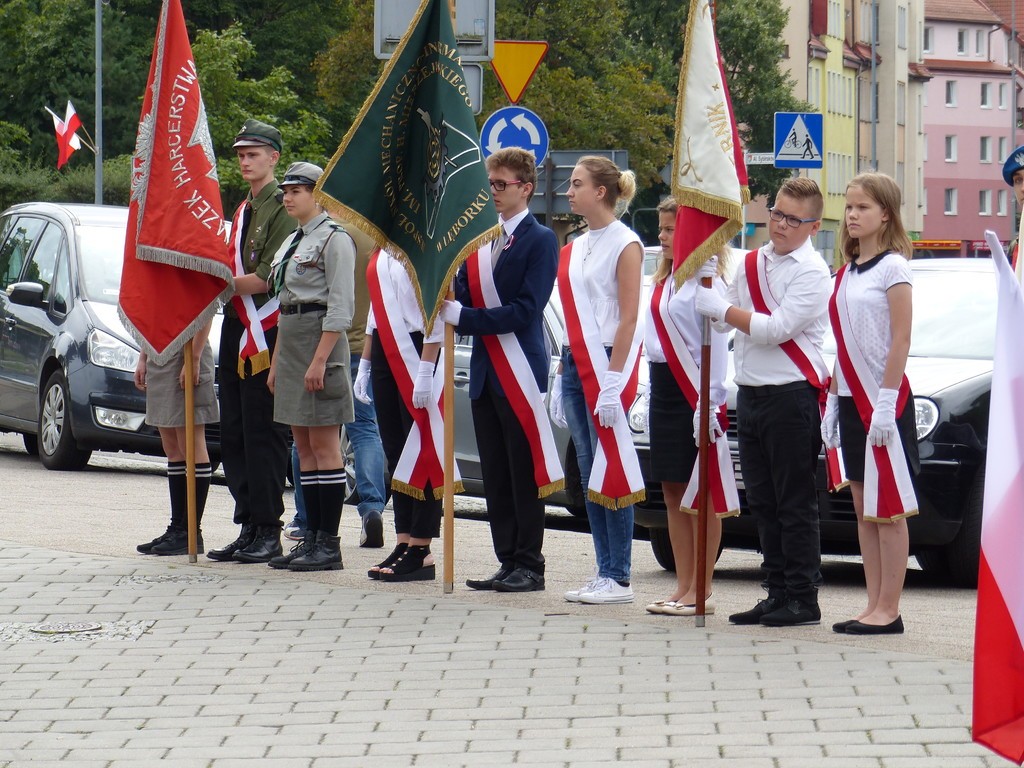W hołdzie bohaterom i ofiarom wojny kwiaty pod Płytą Pocztowców złożyli przedstawiciele samorządu, służby mundurowe, kombatanci, harcerze, reprezentanci placówek oświatowych, stowarzyszeń i instytucji.