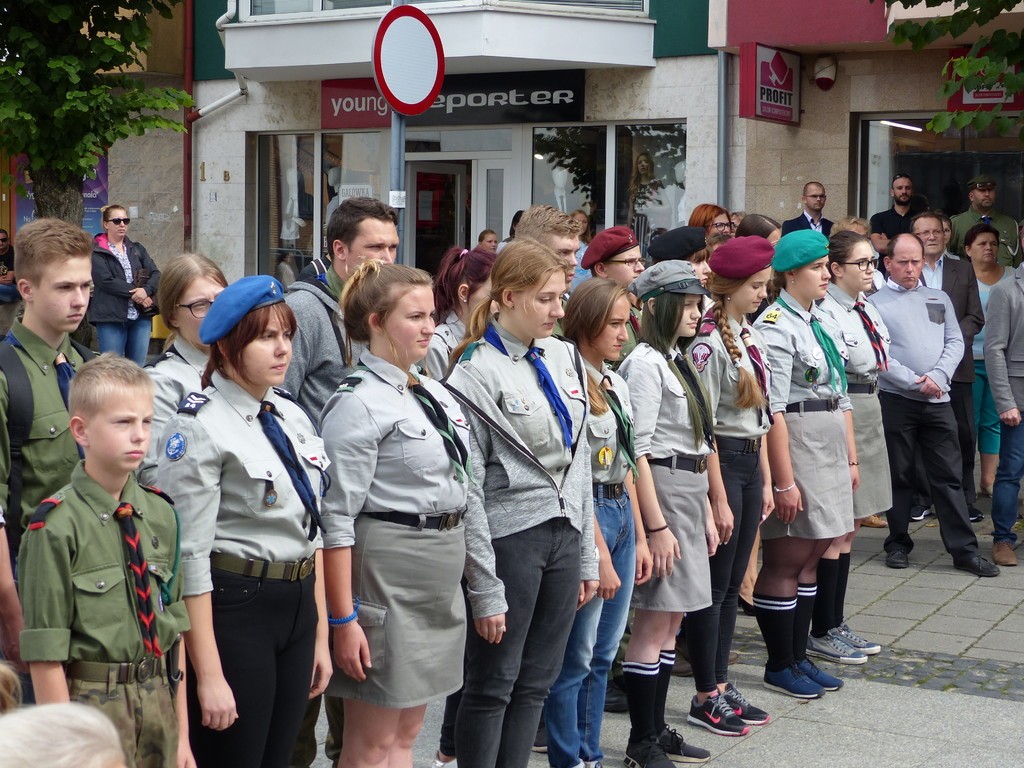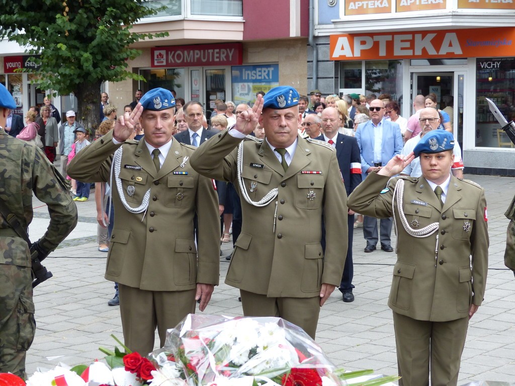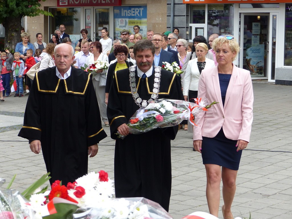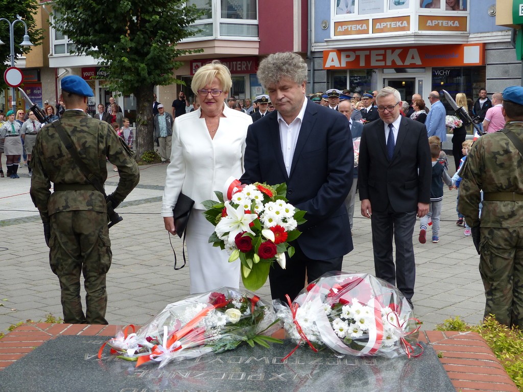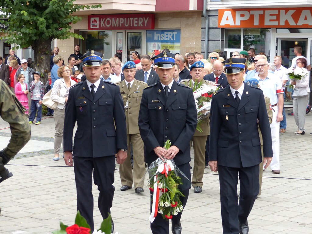 W hołdzie bohaterom i ofiarom wojny kwiaty pod Płytą Pocztowców złożyli przedstawiciele samorządu, służby mundurowe, kombatanci, harcerze, reprezentanci placówek oświatowych, stowarzyszeń i instytucji.