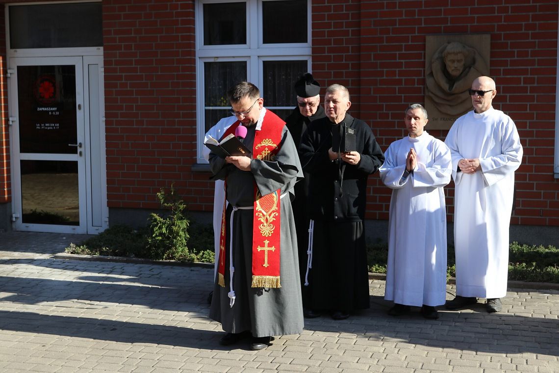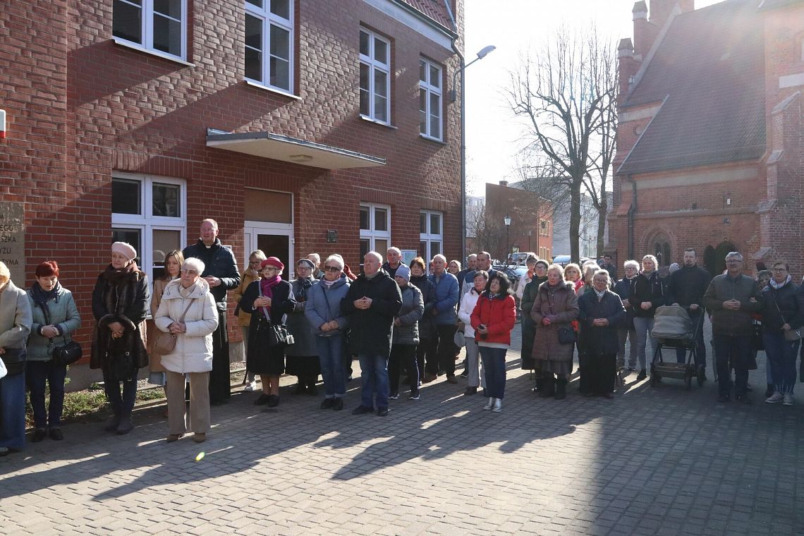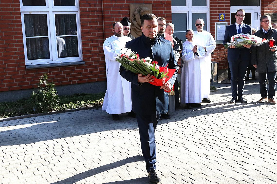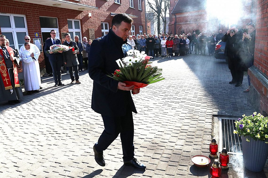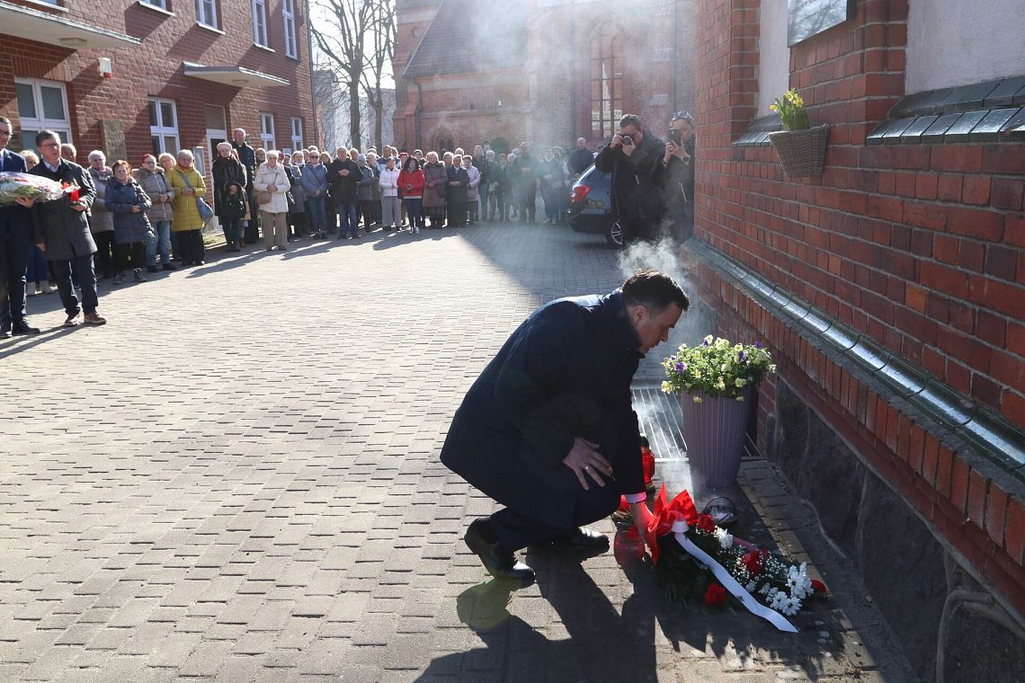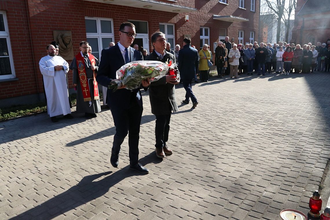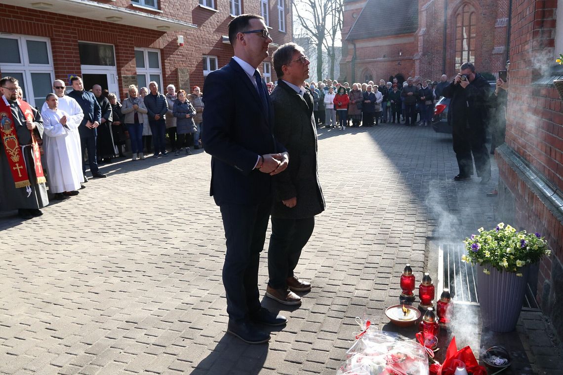Po zakończeniu nabożeństwa uczestnicy uroczystości złożyli kwiaty oraz zapalili znicze pod tablicą pamiątkową umieszczoną na ścianie klasztoru. Widnieje na niej napis upamiętniający osoby zamordowane przez Sowietów 10 marca 1945 roku – ks. Roberta Königa, ks. Franciszka Szynkowskiego oraz uciekinierów przed Armią Czerwoną, którzy przebywali na terenie plebanii.