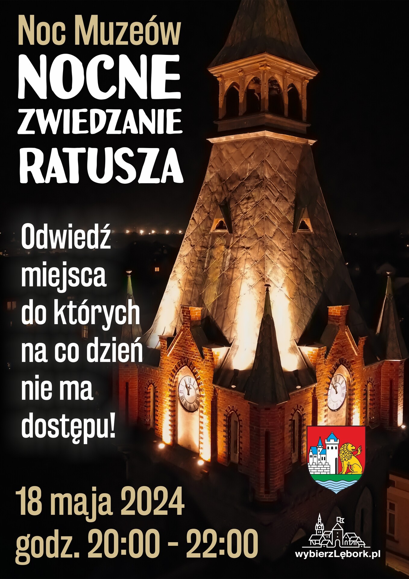 W godzinach 20:00 – 22:00 zapraszamy na nocne zwiedzanie ratusza z burmistrzem Lęborka, także do miejsc na co dzień mało dostępnych.