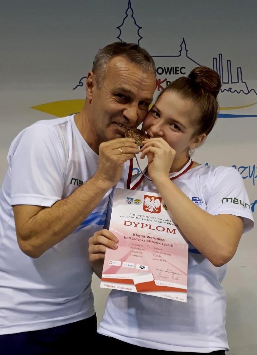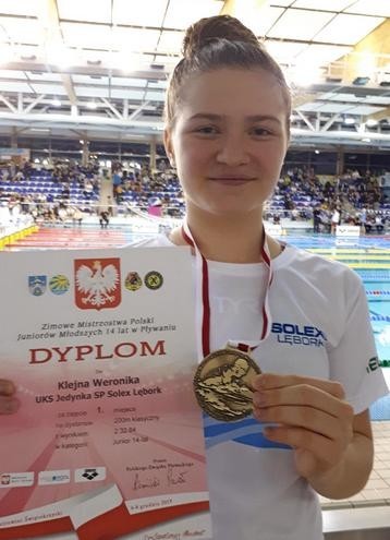 W wyścigu finałowym na dystansie 200m stylem klasycznym Weronika Klejna zajęła I miejsce zdobywając tytuł Mistrzyni Polski w kategorii juniorów 14 letnich osiągając czas 2;32,84s. Wynik Weroniki osiągnięty w finale został poprawiony o ponad 2 sekundy w porównaniu z porannymi eliminacjami i jest nowym rekordem Lęborka w kategorii juniorek 14 letnich.
