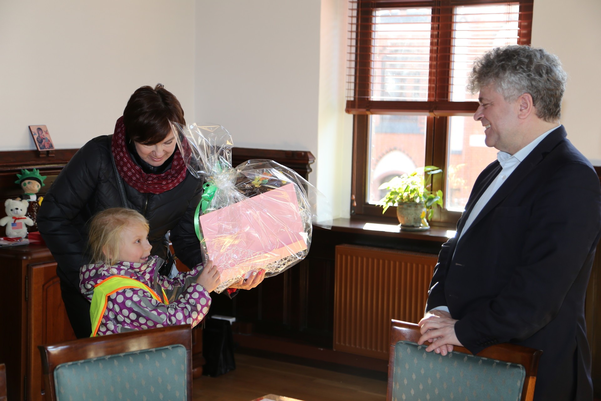 Z piosenkami i wierszykami odwiedziły wczoraj ratusz dzieci z Przedszkola nr 2. Miłych gości przyjął w swoim gabinecie Burmistrz Witold Namyślak. Przedszkolaki złożyły wielkanocne życzenia, a po nich zostały obdarowane słodkościami.