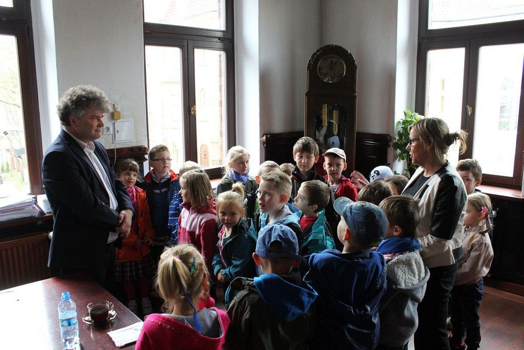 W dniu dzisiejszym lęborski Ratusz odwiedziła grupa dzieci z „zerówki” przy SP nr 3 w Lęborku. Dzieci ugościł Burmistrz Miasta Witold Namyślak. Mali goście zostali poczęstowani słodyczami, burmistrz udostępnił dzieciom także swój fotel i każdy z maluchów mógł sobie w nim wygodnie zasiąść. Dzieci zwiedziły także Salę Ślubów oraz skarbiec, który zrobił na nich duże wrażenie. Na zakończenie wizyty w Urzędzie Miejskim, przedszkolaki wraz z opiekunką zrobiły sobie zbiorowe zdjęcie w holu Ratusza.