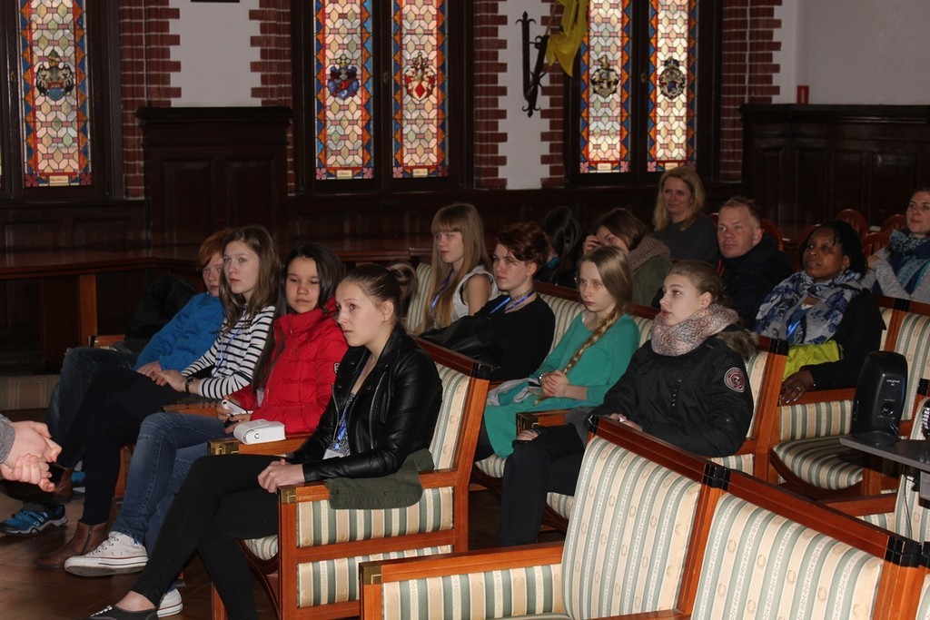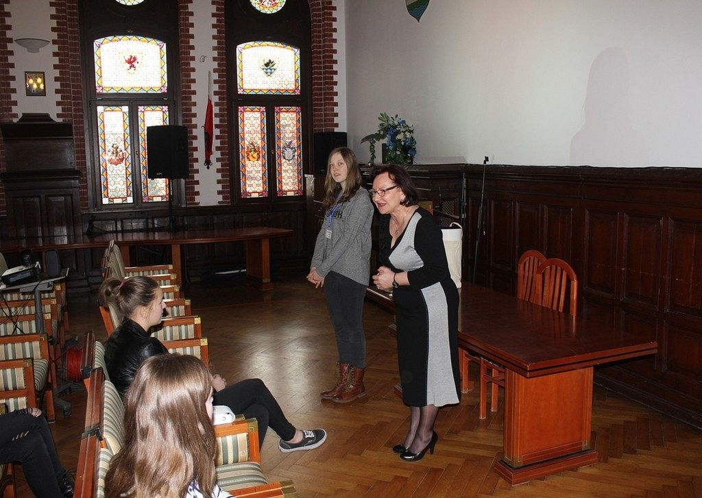W dniu wczorajszym Ratusz odwiedziła grupa uczniów ze Społecznego Gimnazjum Językowego wraz z rówieśnikami z Anglii i Austrii. Gości, na sali rajców powitała wiceburmistrz miasta Alicja Zajączkowska, która przedstawiła sposób działania Rady Miejskiej w Lęborku. Na zakończenie spotkania goście mieli okazję obejrzeć film o średniowiecznym obwarowaniu Lęborka.