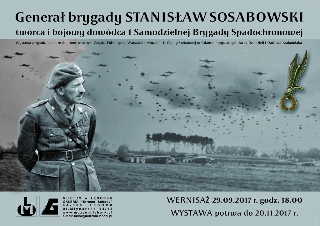 Muzeum w Lęborku Galeria "Strome Schody" serdecznie zaprasza dnia 29 września o godz. 18.00 na wernisaż wystawy „Generał brygady STANISŁAW SOSABOWSKI twórca i bojowy dowódca 1 Samodzielnej Brygady Spadochronowej”.