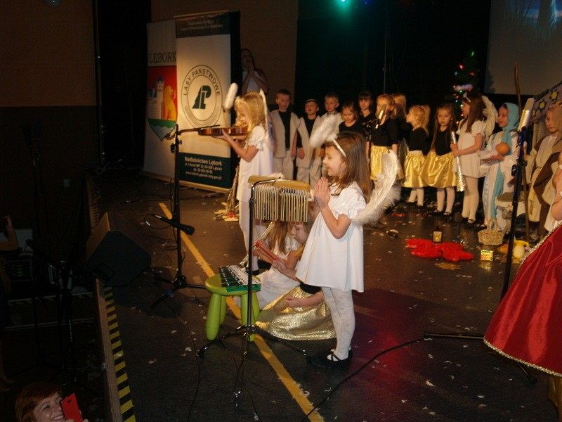 W przerwie odbył się koncert kolęd w wykonaniu zespołu akordeonistów z Wejherowa pod kierownictwem Marty Formeli oraz podsumowanie i wręczenie nagród w konkursie plastycznym Lęborska Maska Jasełkowa.